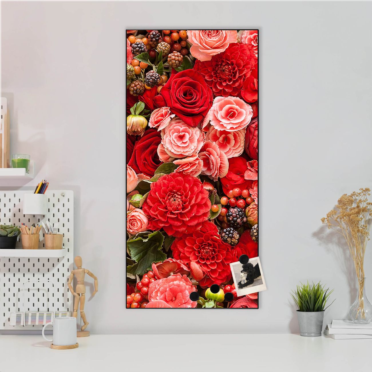 Stahl Magnettafel Hochformat 78x37cm Bouquet in Rot