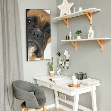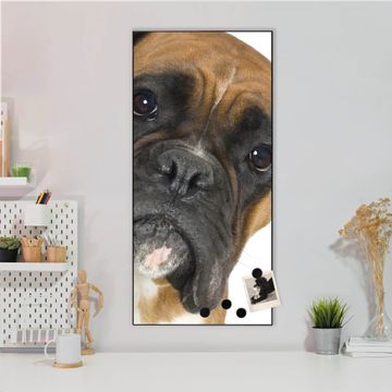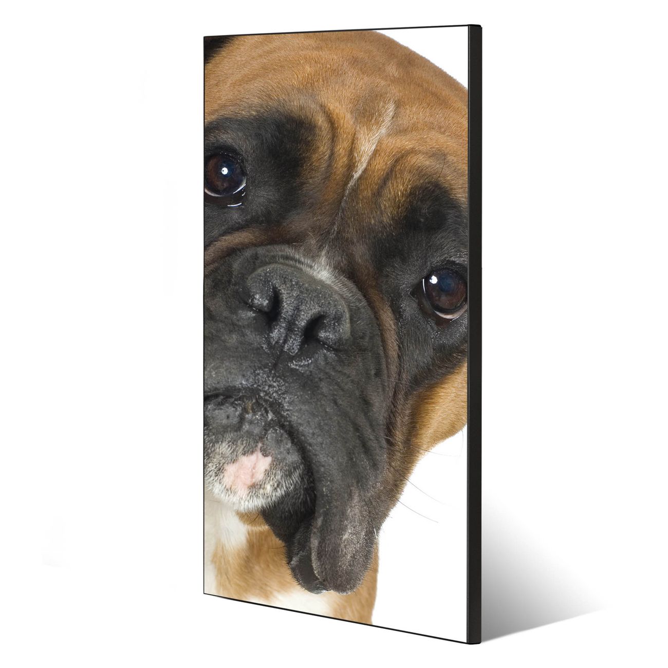 FUNKTION:  Die banjado Magnettafel mit Motiv Boxer Motiv bringt Ordnung in Ihr Zettelchaos. Fotos, Termine, Notizen oder Rezepte lassen Sich hier stilvoll mit Magneten ordnen, Sie behalten alles im Blick. An der Design Magnettafel halten alle handesüblichen Magnete. DESIGN:  Die magnetische Pinnwand mit dem Motiv Motiv Boxer ist ein eleganter Begleiter im Alltag. Mit dieser Memotafel aus Metall haben Sie auch ohne Notizen und Magnete ein schönes Dekoelement. Das Format bietet Ihnen ausreichend Platz um alle wichtigen Informationen im Blick zu behalten. DETAILS:  Die Magnettafel besteht aus silber-grau, weiß oder schwarzlackiertem Stahl. Sie hat eine Größe von 37 x 78 x 2cm. Es befinden sich auf der Rückseite vorgefertigte Aufhängungen die eine schnelle und unkomplizierte Anbringung ermöglichen. Das Motiv ist mit einem seidenmatten Laminat versehen und schützt so zusätzlich vor Kratzern. NUTZEN:  Sie können dieses Memoboard groß als Wandbild nutzen, es halten alle handelsüblichen Magneten daran. Die Pinnwand ist mit einem feuchten Lappen oder Schwamm abwischbar. Sie finden bei uns eine große Auswahl an passenden Magneten. BANJADO:  Wir sind ein kleines Team aus dem Herzen von Sachsen. Wir fertigen alle Artikel von Hand für Sie an, Sie erhalten keine preiswerte Importware. Auf Wunsch können Sie auch Ihr eigenes Foto auf die Magnettafel aufbringen, schreiben Sie uns an. Herzlichst, Ihr banjado-Team