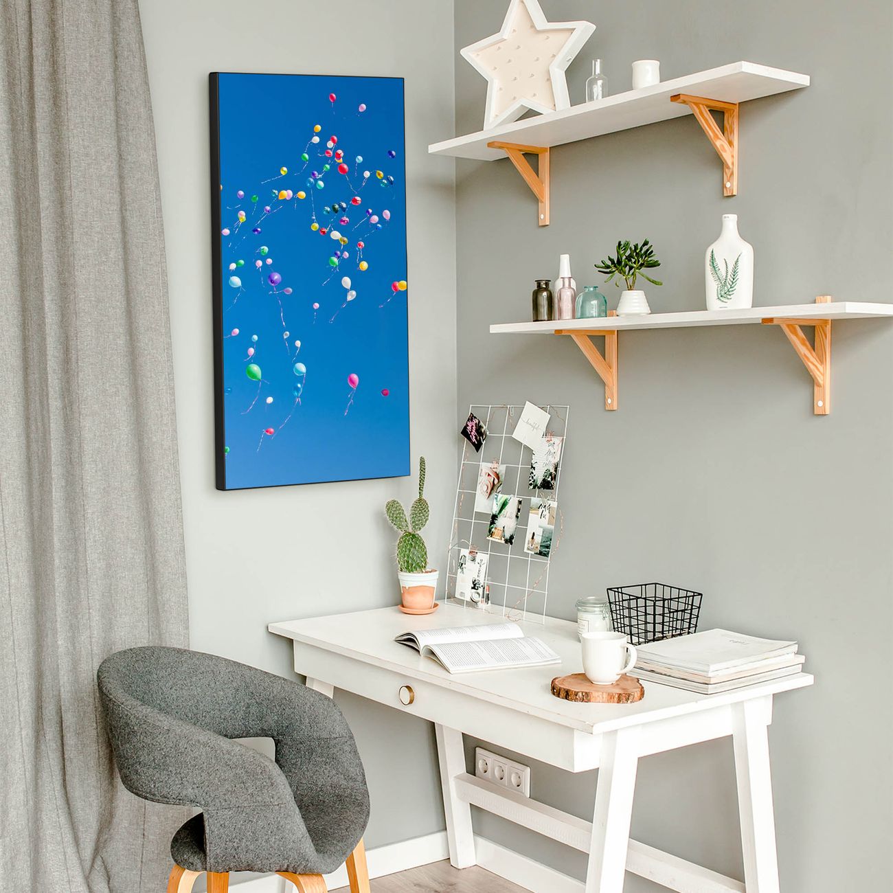 FUNKTION:  Die banjado Magnettafel mit Motiv Bunte Luftballons Motiv bringt Ordnung in Ihr Zettelchaos. Fotos, Termine, Notizen oder Rezepte lassen Sich hier stilvoll mit Magneten ordnen, Sie behalten alles im Blick. An der Design Magnettafel halten alle handesüblichen Magnete. DESIGN:  Die magnetische Pinnwand mit dem Motiv Motiv Bunte Luftballons ist ein eleganter Begleiter im Alltag. Mit dieser Memotafel aus Metall haben Sie auch ohne Notizen und Magnete ein schönes Dekoelement. Das Format bietet Ihnen ausreichend Platz um alle wichtigen Informationen im Blick zu behalten. DETAILS:  Die Magnettafel besteht aus silber-grau, weiß oder schwarzlackiertem Stahl. Sie hat eine Größe von 37 x 78 x 2cm. Es befinden sich auf der Rückseite vorgefertigte Aufhängungen die eine schnelle und unkomplizierte Anbringung ermöglichen. Das Motiv ist mit einem seidenmatten Laminat versehen und schützt so zusätzlich vor Kratzern. NUTZEN:  Sie können dieses Memoboard groß als Wandbild nutzen, es halten alle handelsüblichen Magneten daran. Die Pinnwand ist mit einem feuchten Lappen oder Schwamm abwischbar. Sie finden bei uns eine große Auswahl an passenden Magneten. BANJADO:  Wir sind ein kleines Team aus dem Herzen von Sachsen. Wir fertigen alle Artikel von Hand für Sie an, Sie erhalten keine preiswerte Importware. Auf Wunsch können Sie auch Ihr eigenes Foto auf die Magnettafel aufbringen, schreiben Sie uns an. Herzlichst, Ihr banjado-Team