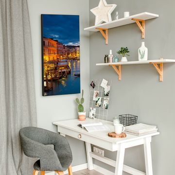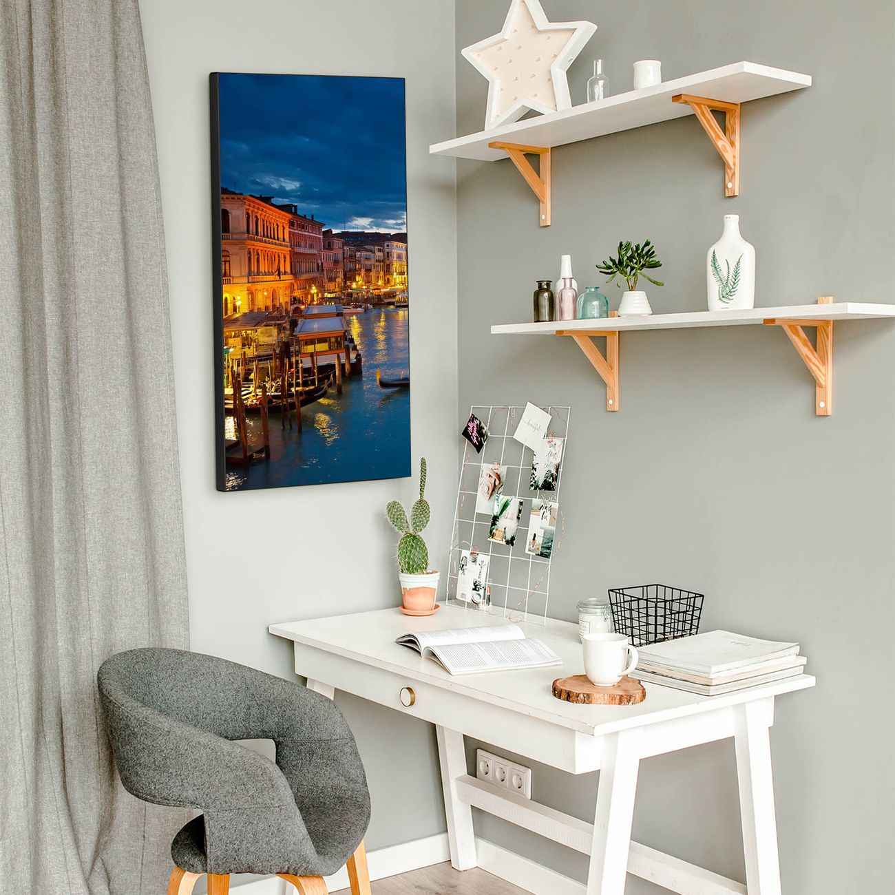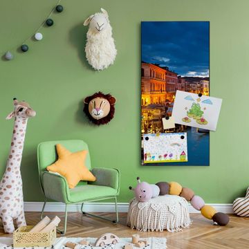 FUNKTION:  Die banjado Magnettafel mit Motiv Canale Grande Bei Nacht Motiv bringt Ordnung in Ihr Zettelchaos. Fotos, Termine, Notizen oder Rezepte lassen Sich hier stilvoll mit Magneten ordnen, Sie behalten alles im Blick. An der Design Magnettafel halten alle handesüblichen Magnete. DESIGN:  Die magnetische Pinnwand mit dem Motiv Motiv Canale Grande Bei Nacht ist ein eleganter Begleiter im Alltag. Mit dieser Memotafel aus Metall haben Sie auch ohne Notizen und Magnete ein schönes Dekoelement. Das Format bietet Ihnen ausreichend Platz um alle wichtigen Informationen im Blick zu behalten. DETAILS:  Die Magnettafel besteht aus silber-grau, weiß oder schwarzlackiertem Stahl. Sie hat eine Größe von 37 x 78 x 2cm. Es befinden sich auf der Rückseite vorgefertigte Aufhängungen die eine schnelle und unkomplizierte Anbringung ermöglichen. Das Motiv ist mit einem seidenmatten Laminat versehen und schützt so zusätzlich vor Kratzern. NUTZEN:  Sie können dieses Memoboard groß als Wandbild nutzen, es halten alle handelsüblichen Magneten daran. Die Pinnwand ist mit einem feuchten Lappen oder Schwamm abwischbar. Sie finden bei uns eine große Auswahl an passenden Magneten. BANJADO:  Wir sind ein kleines Team aus dem Herzen von Sachsen. Wir fertigen alle Artikel von Hand für Sie an, Sie erhalten keine preiswerte Importware. Auf Wunsch können Sie auch Ihr eigenes Foto auf die Magnettafel aufbringen, schreiben Sie uns an. Herzlichst, Ihr banjado-Team