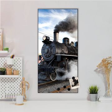Stahl Magnettafel Hochformat 78x37cm Dampflok