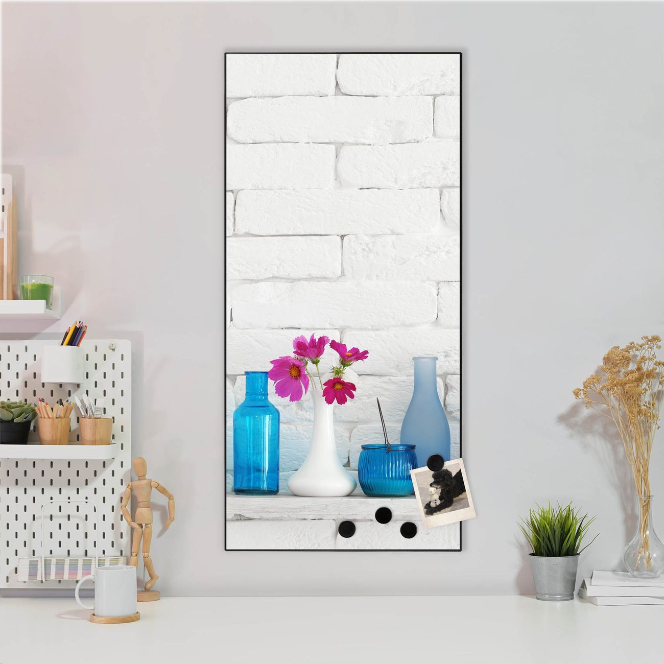 FUNKTION:  Die banjado Magnettafel mit Motiv Dekoartikel Blau Motiv bringt Ordnung in Ihr Zettelchaos. Fotos, Termine, Notizen oder Rezepte lassen Sich hier stilvoll mit Magneten ordnen, Sie behalten alles im Blick. An der Design Magnettafel halten alle handesüblichen Magnete. DESIGN:  Die magnetische Pinnwand mit dem Motiv Motiv Dekoartikel Blau ist ein eleganter Begleiter im Alltag. Mit dieser Memotafel aus Metall haben Sie auch ohne Notizen und Magnete ein schönes Dekoelement. Das Format bietet Ihnen ausreichend Platz um alle wichtigen Informationen im Blick zu behalten. DETAILS:  Die Magnettafel besteht aus silber-grau, weiß oder schwarzlackiertem Stahl. Sie hat eine Größe von 37 x 78 x 2cm. Es befinden sich auf der Rückseite vorgefertigte Aufhängungen die eine schnelle und unkomplizierte Anbringung ermöglichen. Das Motiv ist mit einem seidenmatten Laminat versehen und schützt so zusätzlich vor Kratzern. NUTZEN:  Sie können dieses Memoboard groß als Wandbild nutzen, es halten alle handelsüblichen Magneten daran. Die Pinnwand ist mit einem feuchten Lappen oder Schwamm abwischbar. Sie finden bei uns eine große Auswahl an passenden Magneten. BANJADO:  Wir sind ein kleines Team aus dem Herzen von Sachsen. Wir fertigen alle Artikel von Hand für Sie an, Sie erhalten keine preiswerte Importware. Auf Wunsch können Sie auch Ihr eigenes Foto auf die Magnettafel aufbringen, schreiben Sie uns an. Herzlichst, Ihr banjado-Team