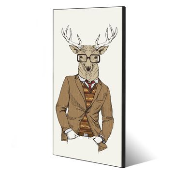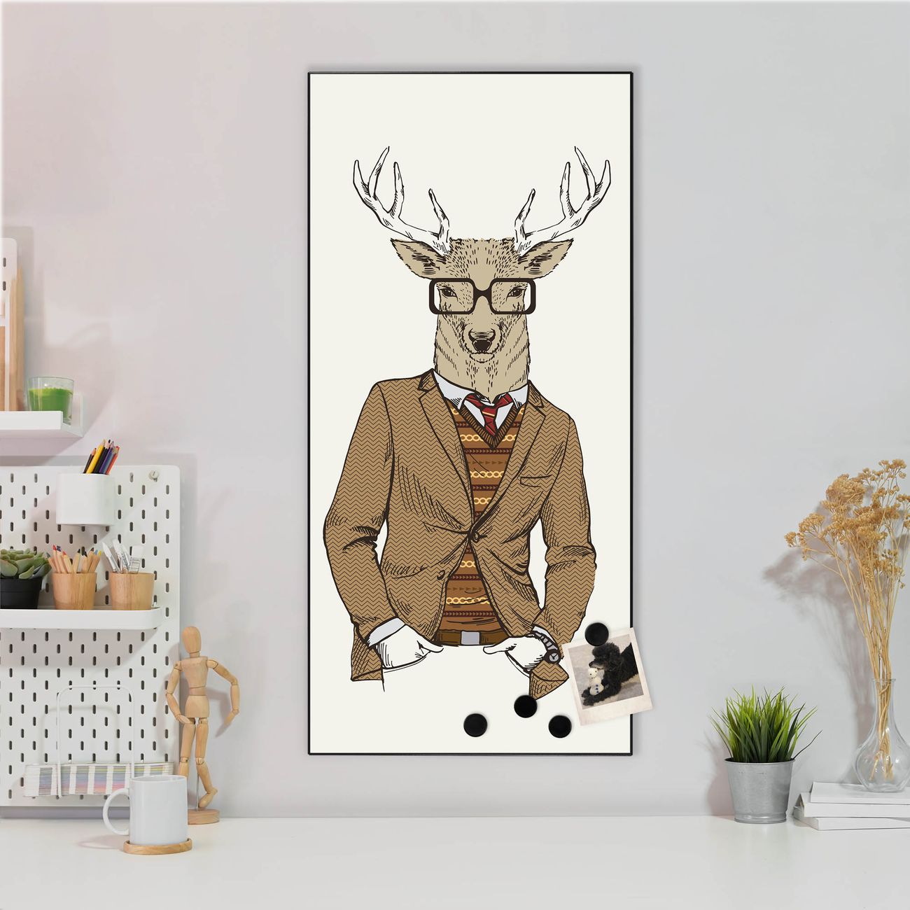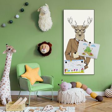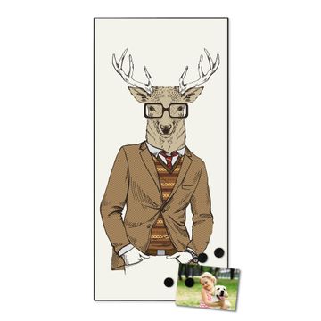 FUNKTION:  Die banjado Magnettafel mit Motiv Doktor Hirsch Motiv bringt Ordnung in Ihr Zettelchaos. Fotos, Termine, Notizen oder Rezepte lassen Sich hier stilvoll mit Magneten ordnen, Sie behalten alles im Blick. An der Design Magnettafel halten alle handesüblichen Magnete. DESIGN:  Die magnetische Pinnwand mit dem Motiv Motiv Doktor Hirsch ist ein eleganter Begleiter im Alltag. Mit dieser Memotafel aus Metall haben Sie auch ohne Notizen und Magnete ein schönes Dekoelement. Das Format bietet Ihnen ausreichend Platz um alle wichtigen Informationen im Blick zu behalten. DETAILS:  Die Magnettafel besteht aus silber-grau, weiß oder schwarzlackiertem Stahl. Sie hat eine Größe von 37 x 78 x 2cm. Es befinden sich auf der Rückseite vorgefertigte Aufhängungen die eine schnelle und unkomplizierte Anbringung ermöglichen. Das Motiv ist mit einem seidenmatten Laminat versehen und schützt so zusätzlich vor Kratzern. NUTZEN:  Sie können dieses Memoboard groß als Wandbild nutzen, es halten alle handelsüblichen Magneten daran. Die Pinnwand ist mit einem feuchten Lappen oder Schwamm abwischbar. Sie finden bei uns eine große Auswahl an passenden Magneten. BANJADO:  Wir sind ein kleines Team aus dem Herzen von Sachsen. Wir fertigen alle Artikel von Hand für Sie an, Sie erhalten keine preiswerte Importware. Auf Wunsch können Sie auch Ihr eigenes Foto auf die Magnettafel aufbringen, schreiben Sie uns an. Herzlichst, Ihr banjado-Team