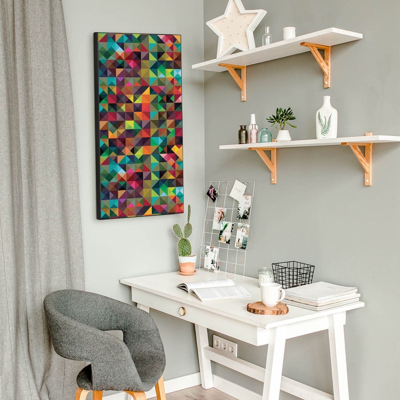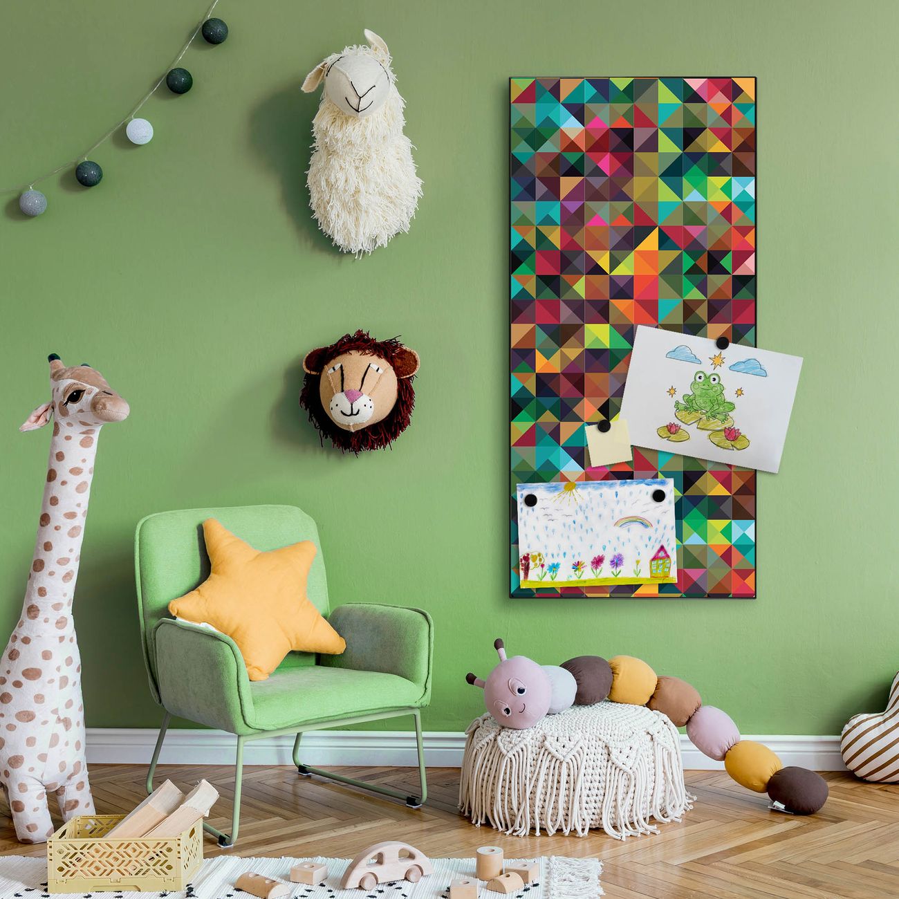 FUNKTION:  Die banjado Magnettafel mit Motiv Dunkles Kaleidoskop Motiv bringt Ordnung in Ihr Zettelchaos. Fotos, Termine, Notizen oder Rezepte lassen Sich hier stilvoll mit Magneten ordnen, Sie behalten alles im Blick. An der Design Magnettafel halten alle handesüblichen Magnete. DESIGN:  Die magnetische Pinnwand mit dem Motiv Motiv Dunkles Kaleidoskop ist ein eleganter Begleiter im Alltag. Mit dieser Memotafel aus Metall haben Sie auch ohne Notizen und Magnete ein schönes Dekoelement. Das Format bietet Ihnen ausreichend Platz um alle wichtigen Informationen im Blick zu behalten. DETAILS:  Die Magnettafel besteht aus silber-grau, weiß oder schwarzlackiertem Stahl. Sie hat eine Größe von 37 x 78 x 2cm. Es befinden sich auf der Rückseite vorgefertigte Aufhängungen die eine schnelle und unkomplizierte Anbringung ermöglichen. Das Motiv ist mit einem seidenmatten Laminat versehen und schützt so zusätzlich vor Kratzern. NUTZEN:  Sie können dieses Memoboard groß als Wandbild nutzen, es halten alle handelsüblichen Magneten daran. Die Pinnwand ist mit einem feuchten Lappen oder Schwamm abwischbar. Sie finden bei uns eine große Auswahl an passenden Magneten. BANJADO:  Wir sind ein kleines Team aus dem Herzen von Sachsen. Wir fertigen alle Artikel von Hand für Sie an, Sie erhalten keine preiswerte Importware. Auf Wunsch können Sie auch Ihr eigenes Foto auf die Magnettafel aufbringen, schreiben Sie uns an. Herzlichst, Ihr banjado-Team