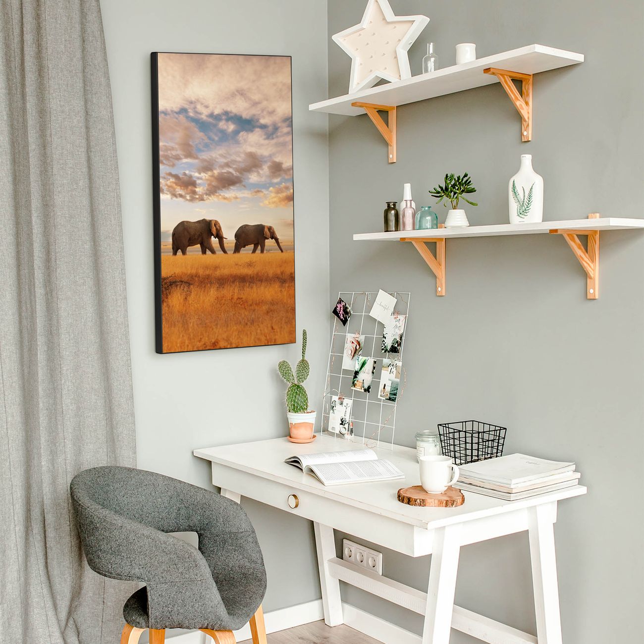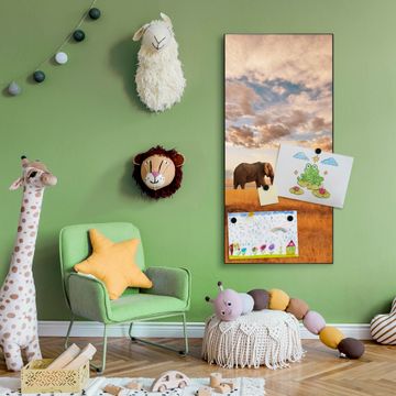 FUNKTION:  Die banjado Magnettafel mit Motiv Elefanten Motiv bringt Ordnung in Ihr Zettelchaos. Fotos, Termine, Notizen oder Rezepte lassen Sich hier stilvoll mit Magneten ordnen, Sie behalten alles im Blick. An der Design Magnettafel halten alle handesüblichen Magnete. DESIGN:  Die magnetische Pinnwand mit dem Motiv Motiv Elefanten ist ein eleganter Begleiter im Alltag. Mit dieser Memotafel aus Metall haben Sie auch ohne Notizen und Magnete ein schönes Dekoelement. Das Format bietet Ihnen ausreichend Platz um alle wichtigen Informationen im Blick zu behalten. DETAILS:  Die Magnettafel besteht aus silber-grau, weiß oder schwarzlackiertem Stahl. Sie hat eine Größe von 37 x 78 x 2cm. Es befinden sich auf der Rückseite vorgefertigte Aufhängungen die eine schnelle und unkomplizierte Anbringung ermöglichen. Das Motiv ist mit einem seidenmatten Laminat versehen und schützt so zusätzlich vor Kratzern. NUTZEN:  Sie können dieses Memoboard groß als Wandbild nutzen, es halten alle handelsüblichen Magneten daran. Die Pinnwand ist mit einem feuchten Lappen oder Schwamm abwischbar. Sie finden bei uns eine große Auswahl an passenden Magneten. BANJADO:  Wir sind ein kleines Team aus dem Herzen von Sachsen. Wir fertigen alle Artikel von Hand für Sie an, Sie erhalten keine preiswerte Importware. Auf Wunsch können Sie auch Ihr eigenes Foto auf die Magnettafel aufbringen, schreiben Sie uns an. Herzlichst, Ihr banjado-Team