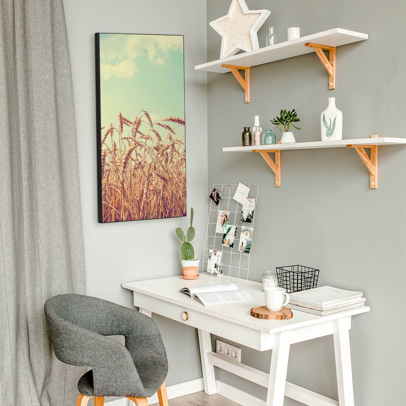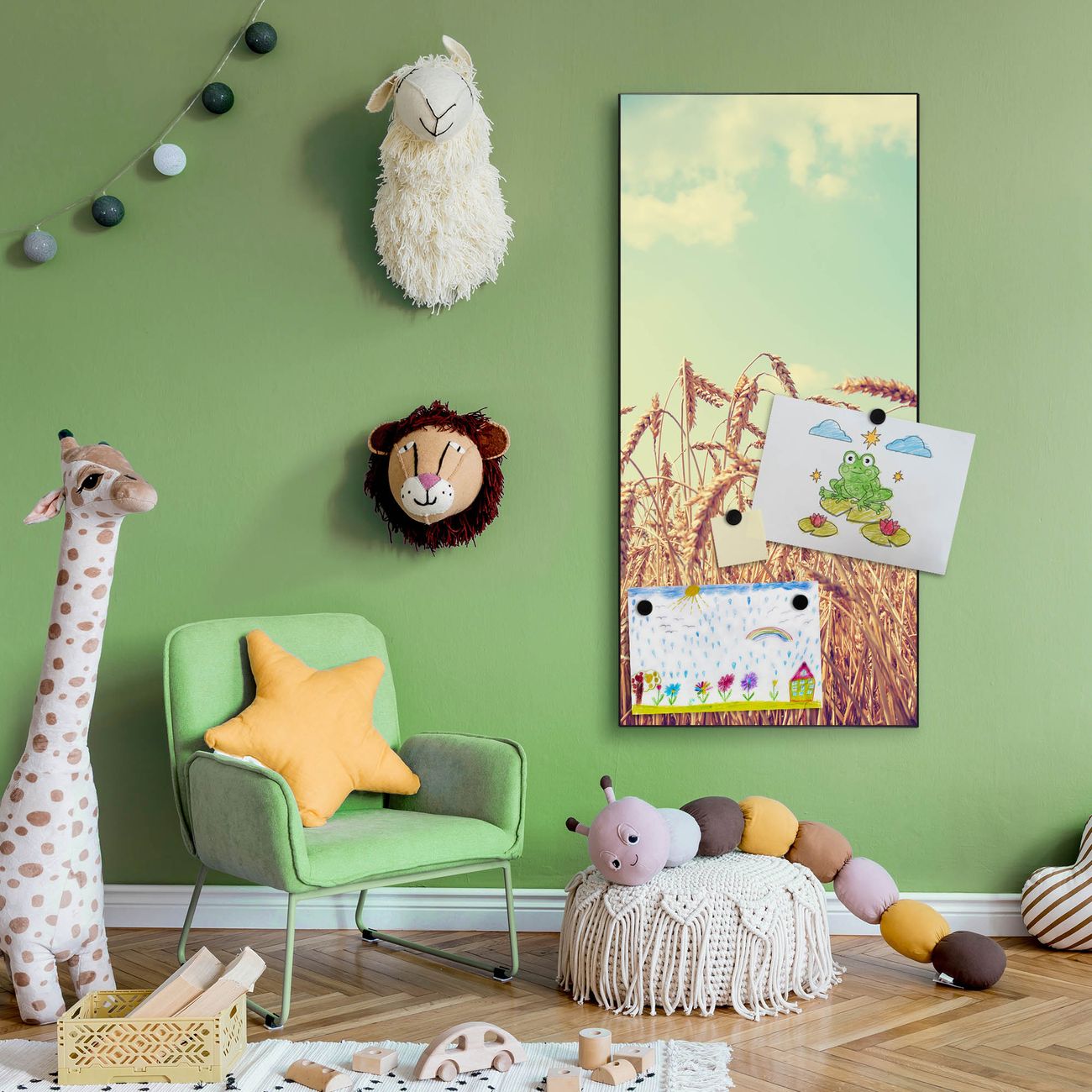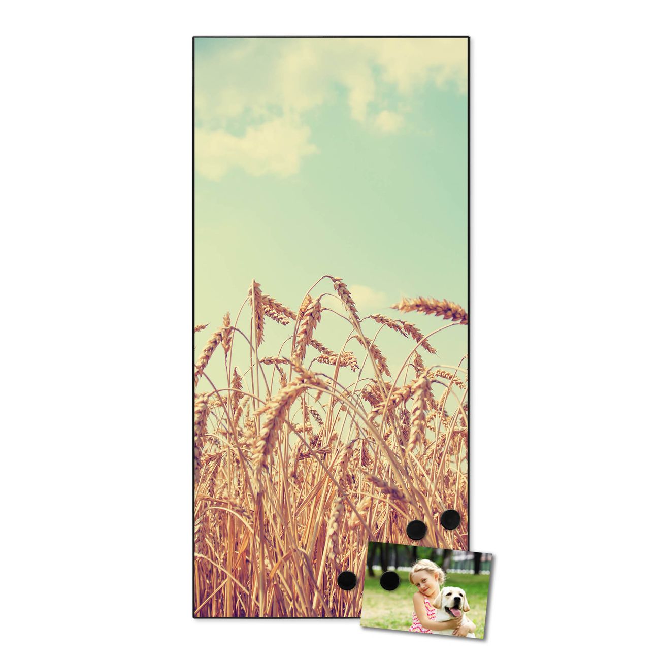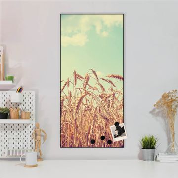 FUNKTION:  Die banjado Magnettafel mit Motiv Erntezeit Motiv bringt Ordnung in Ihr Zettelchaos. Fotos, Termine, Notizen oder Rezepte lassen Sich hier stilvoll mit Magneten ordnen, Sie behalten alles im Blick. An der Design Magnettafel halten alle handesüblichen Magnete. DESIGN:  Die magnetische Pinnwand mit dem Motiv Motiv Erntezeit ist ein eleganter Begleiter im Alltag. Mit dieser Memotafel aus Metall haben Sie auch ohne Notizen und Magnete ein schönes Dekoelement. Das Format bietet Ihnen ausreichend Platz um alle wichtigen Informationen im Blick zu behalten. DETAILS:  Die Magnettafel besteht aus silber-grau, weiß oder schwarzlackiertem Stahl. Sie hat eine Größe von 37 x 78 x 2cm. Es befinden sich auf der Rückseite vorgefertigte Aufhängungen die eine schnelle und unkomplizierte Anbringung ermöglichen. Das Motiv ist mit einem seidenmatten Laminat versehen und schützt so zusätzlich vor Kratzern. NUTZEN:  Sie können dieses Memoboard groß als Wandbild nutzen, es halten alle handelsüblichen Magneten daran. Die Pinnwand ist mit einem feuchten Lappen oder Schwamm abwischbar. Sie finden bei uns eine große Auswahl an passenden Magneten. BANJADO:  Wir sind ein kleines Team aus dem Herzen von Sachsen. Wir fertigen alle Artikel von Hand für Sie an, Sie erhalten keine preiswerte Importware. Auf Wunsch können Sie auch Ihr eigenes Foto auf die Magnettafel aufbringen, schreiben Sie uns an. Herzlichst, Ihr banjado-Team