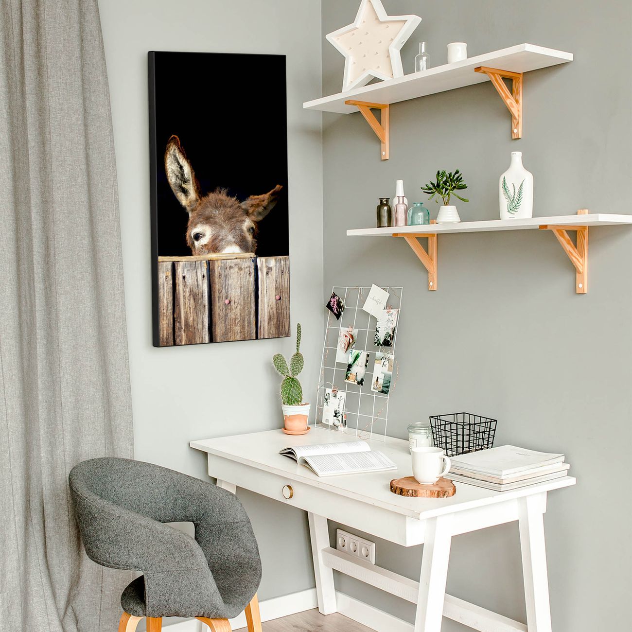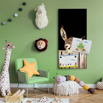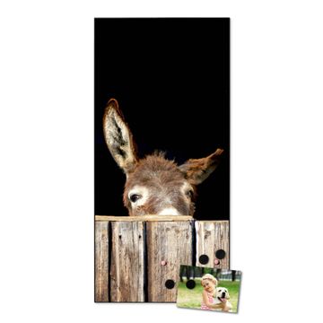 FUNKTION:  Die banjado Magnettafel mit Motiv Esel Motiv bringt Ordnung in Ihr Zettelchaos. Fotos, Termine, Notizen oder Rezepte lassen Sich hier stilvoll mit Magneten ordnen, Sie behalten alles im Blick. An der Design Magnettafel halten alle handesüblichen Magnete. DESIGN:  Die magnetische Pinnwand mit dem Motiv Motiv Esel ist ein eleganter Begleiter im Alltag. Mit dieser Memotafel aus Metall haben Sie auch ohne Notizen und Magnete ein schönes Dekoelement. Das Format bietet Ihnen ausreichend Platz um alle wichtigen Informationen im Blick zu behalten. DETAILS:  Die Magnettafel besteht aus silber-grau, weiß oder schwarzlackiertem Stahl. Sie hat eine Größe von 37 x 78 x 2cm. Es befinden sich auf der Rückseite vorgefertigte Aufhängungen die eine schnelle und unkomplizierte Anbringung ermöglichen. Das Motiv ist mit einem seidenmatten Laminat versehen und schützt so zusätzlich vor Kratzern. NUTZEN:  Sie können dieses Memoboard groß als Wandbild nutzen, es halten alle handelsüblichen Magneten daran. Die Pinnwand ist mit einem feuchten Lappen oder Schwamm abwischbar. Sie finden bei uns eine große Auswahl an passenden Magneten. BANJADO:  Wir sind ein kleines Team aus dem Herzen von Sachsen. Wir fertigen alle Artikel von Hand für Sie an, Sie erhalten keine preiswerte Importware. Auf Wunsch können Sie auch Ihr eigenes Foto auf die Magnettafel aufbringen, schreiben Sie uns an. Herzlichst, Ihr banjado-Team