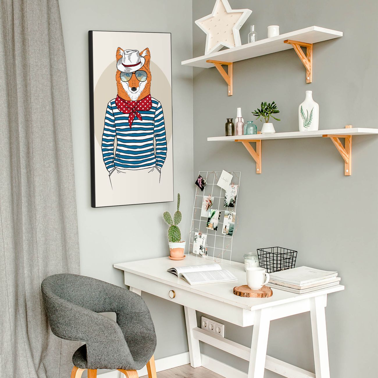 FUNKTION:  Die banjado Magnettafel mit Motiv Fancy Fox Motiv bringt Ordnung in Ihr Zettelchaos. Fotos, Termine, Notizen oder Rezepte lassen Sich hier stilvoll mit Magneten ordnen, Sie behalten alles im Blick. An der Design Magnettafel halten alle handesüblichen Magnete. DESIGN:  Die magnetische Pinnwand mit dem Motiv Motiv Fancy Fox ist ein eleganter Begleiter im Alltag. Mit dieser Memotafel aus Metall haben Sie auch ohne Notizen und Magnete ein schönes Dekoelement. Das Format bietet Ihnen ausreichend Platz um alle wichtigen Informationen im Blick zu behalten. DETAILS:  Die Magnettafel besteht aus silber-grau, weiß oder schwarzlackiertem Stahl. Sie hat eine Größe von 37 x 78 x 2cm. Es befinden sich auf der Rückseite vorgefertigte Aufhängungen die eine schnelle und unkomplizierte Anbringung ermöglichen. Das Motiv ist mit einem seidenmatten Laminat versehen und schützt so zusätzlich vor Kratzern. NUTZEN:  Sie können dieses Memoboard groß als Wandbild nutzen, es halten alle handelsüblichen Magneten daran. Die Pinnwand ist mit einem feuchten Lappen oder Schwamm abwischbar. Sie finden bei uns eine große Auswahl an passenden Magneten. BANJADO:  Wir sind ein kleines Team aus dem Herzen von Sachsen. Wir fertigen alle Artikel von Hand für Sie an, Sie erhalten keine preiswerte Importware. Auf Wunsch können Sie auch Ihr eigenes Foto auf die Magnettafel aufbringen, schreiben Sie uns an. Herzlichst, Ihr banjado-Team