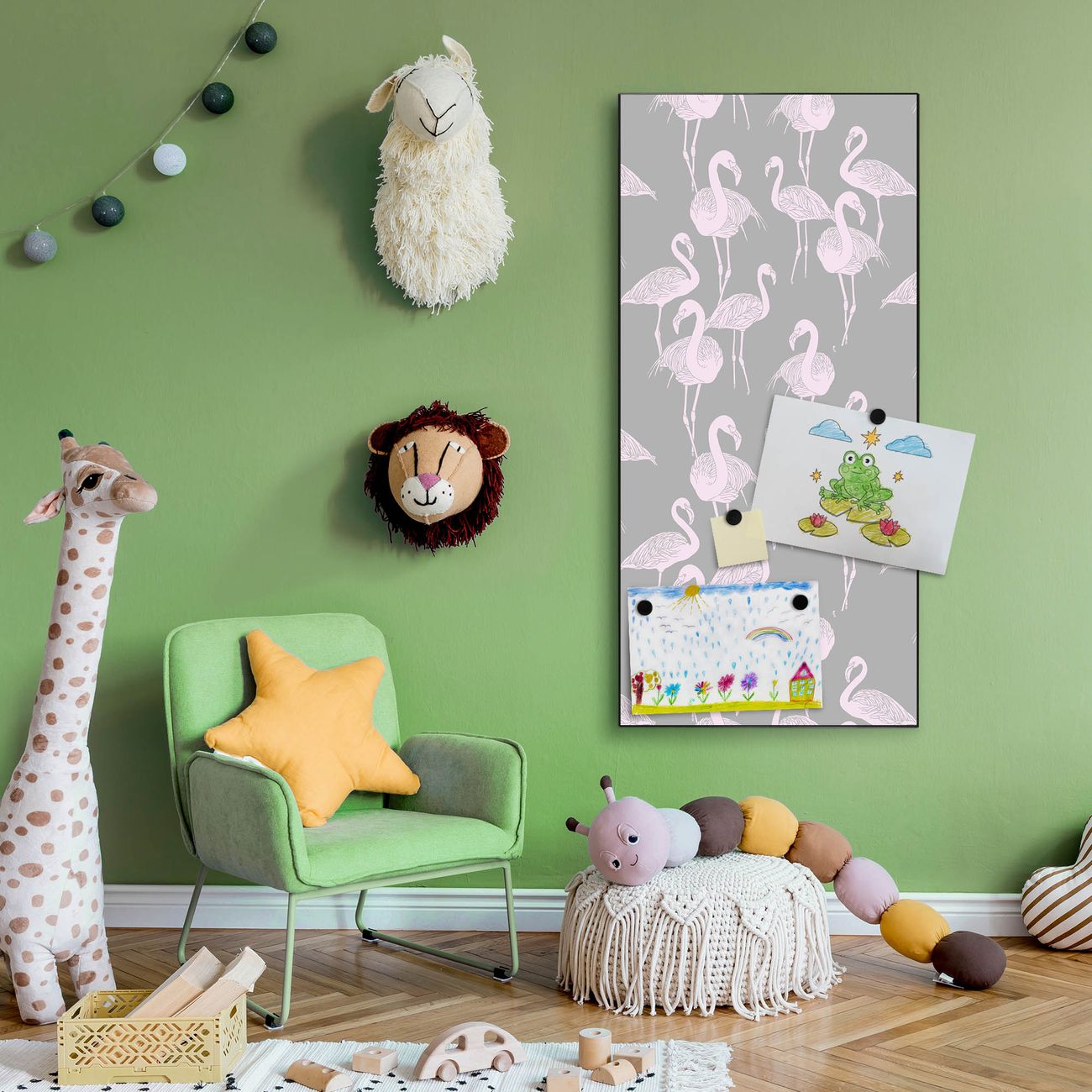 FUNKTION:  Die banjado Magnettafel mit Motiv Flamingos Blass Motiv bringt Ordnung in Ihr Zettelchaos. Fotos, Termine, Notizen oder Rezepte lassen Sich hier stilvoll mit Magneten ordnen, Sie behalten alles im Blick. An der Design Magnettafel halten alle handesüblichen Magnete. DESIGN:  Die magnetische Pinnwand mit dem Motiv Motiv Flamingos Blass ist ein eleganter Begleiter im Alltag. Mit dieser Memotafel aus Metall haben Sie auch ohne Notizen und Magnete ein schönes Dekoelement. Das Format bietet Ihnen ausreichend Platz um alle wichtigen Informationen im Blick zu behalten. DETAILS:  Die Magnettafel besteht aus silber-grau, weiß oder schwarzlackiertem Stahl. Sie hat eine Größe von 37 x 78 x 2cm. Es befinden sich auf der Rückseite vorgefertigte Aufhängungen die eine schnelle und unkomplizierte Anbringung ermöglichen. Das Motiv ist mit einem seidenmatten Laminat versehen und schützt so zusätzlich vor Kratzern. NUTZEN:  Sie können dieses Memoboard groß als Wandbild nutzen, es halten alle handelsüblichen Magneten daran. Die Pinnwand ist mit einem feuchten Lappen oder Schwamm abwischbar. Sie finden bei uns eine große Auswahl an passenden Magneten. BANJADO:  Wir sind ein kleines Team aus dem Herzen von Sachsen. Wir fertigen alle Artikel von Hand für Sie an, Sie erhalten keine preiswerte Importware. Auf Wunsch können Sie auch Ihr eigenes Foto auf die Magnettafel aufbringen, schreiben Sie uns an. Herzlichst, Ihr banjado-Team