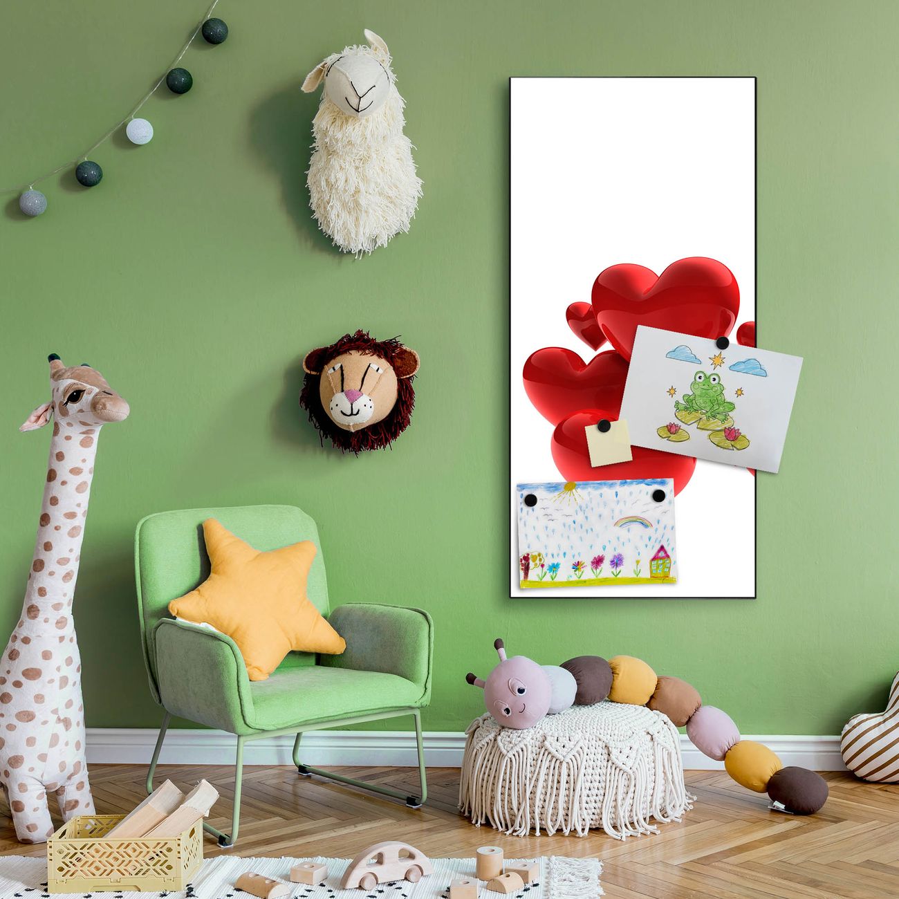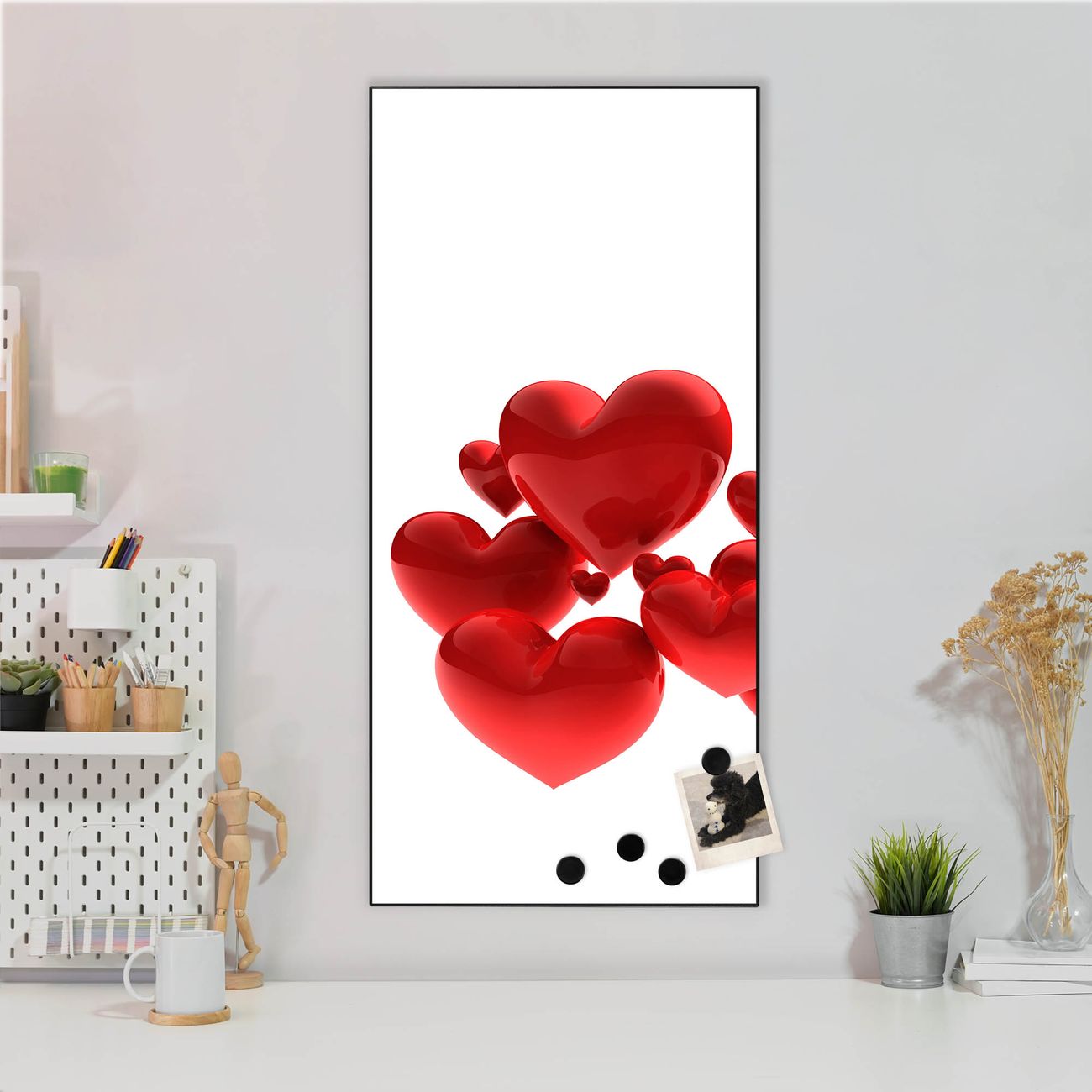 Stahl Magnettafel Hochformat 78x37cm Fliegende Herzen