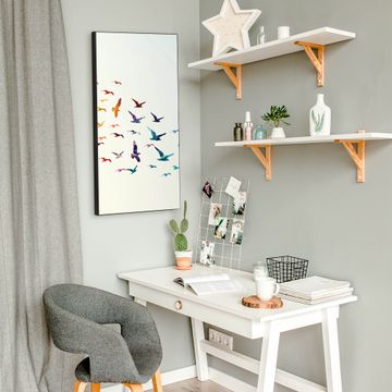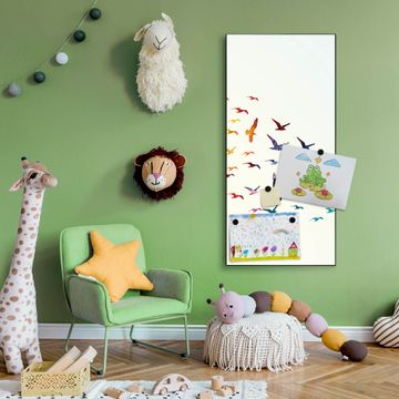 FUNKTION:  Die banjado Magnettafel mit Motiv Fliegende Vögel Motiv bringt Ordnung in Ihr Zettelchaos. Fotos, Termine, Notizen oder Rezepte lassen Sich hier stilvoll mit Magneten ordnen, Sie behalten alles im Blick. An der Design Magnettafel halten alle handesüblichen Magnete. DESIGN:  Die magnetische Pinnwand mit dem Motiv Motiv Fliegende Vögel ist ein eleganter Begleiter im Alltag. Mit dieser Memotafel aus Metall haben Sie auch ohne Notizen und Magnete ein schönes Dekoelement. Das Format bietet Ihnen ausreichend Platz um alle wichtigen Informationen im Blick zu behalten. DETAILS:  Die Magnettafel besteht aus silber-grau, weiß oder schwarzlackiertem Stahl. Sie hat eine Größe von 37 x 78 x 2cm. Es befinden sich auf der Rückseite vorgefertigte Aufhängungen die eine schnelle und unkomplizierte Anbringung ermöglichen. Das Motiv ist mit einem seidenmatten Laminat versehen und schützt so zusätzlich vor Kratzern. NUTZEN:  Sie können dieses Memoboard groß als Wandbild nutzen, es halten alle handelsüblichen Magneten daran. Die Pinnwand ist mit einem feuchten Lappen oder Schwamm abwischbar. Sie finden bei uns eine große Auswahl an passenden Magneten. BANJADO:  Wir sind ein kleines Team aus dem Herzen von Sachsen. Wir fertigen alle Artikel von Hand für Sie an, Sie erhalten keine preiswerte Importware. Auf Wunsch können Sie auch Ihr eigenes Foto auf die Magnettafel aufbringen, schreiben Sie uns an. Herzlichst, Ihr banjado-Team