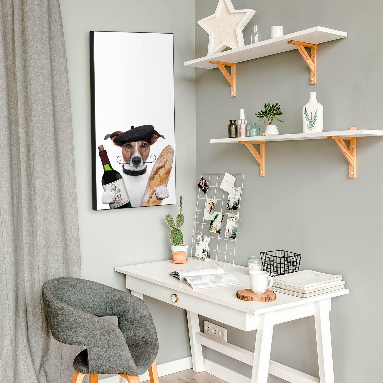 FUNKTION:  Die banjado Magnettafel mit Motiv Franzose Jack Russel Motiv bringt Ordnung in Ihr Zettelchaos. Fotos, Termine, Notizen oder Rezepte lassen Sich hier stilvoll mit Magneten ordnen, Sie behalten alles im Blick. An der Design Magnettafel halten alle handesüblichen Magnete. DESIGN:  Die magnetische Pinnwand mit dem Motiv Motiv Franzose Jack Russel ist ein eleganter Begleiter im Alltag. Mit dieser Memotafel aus Metall haben Sie auch ohne Notizen und Magnete ein schönes Dekoelement. Das Format bietet Ihnen ausreichend Platz um alle wichtigen Informationen im Blick zu behalten. DETAILS:  Die Magnettafel besteht aus silber-grau, weiß oder schwarzlackiertem Stahl. Sie hat eine Größe von 37 x 78 x 2cm. Es befinden sich auf der Rückseite vorgefertigte Aufhängungen die eine schnelle und unkomplizierte Anbringung ermöglichen. Das Motiv ist mit einem seidenmatten Laminat versehen und schützt so zusätzlich vor Kratzern. NUTZEN:  Sie können dieses Memoboard groß als Wandbild nutzen, es halten alle handelsüblichen Magneten daran. Die Pinnwand ist mit einem feuchten Lappen oder Schwamm abwischbar. Sie finden bei uns eine große Auswahl an passenden Magneten. BANJADO:  Wir sind ein kleines Team aus dem Herzen von Sachsen. Wir fertigen alle Artikel von Hand für Sie an, Sie erhalten keine preiswerte Importware. Auf Wunsch können Sie auch Ihr eigenes Foto auf die Magnettafel aufbringen, schreiben Sie uns an. Herzlichst, Ihr banjado-Team