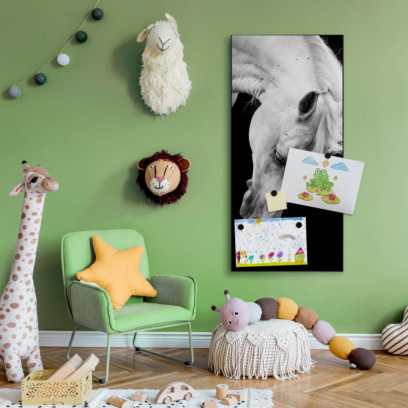 FUNKTION:  Die banjado Magnettafel mit Motiv Frederik Motiv bringt Ordnung in Ihr Zettelchaos. Fotos, Termine, Notizen oder Rezepte lassen Sich hier stilvoll mit Magneten ordnen, Sie behalten alles im Blick. An der Design Magnettafel halten alle handesüblichen Magnete. DESIGN:  Die magnetische Pinnwand mit dem Motiv Motiv Frederik ist ein eleganter Begleiter im Alltag. Mit dieser Memotafel aus Metall haben Sie auch ohne Notizen und Magnete ein schönes Dekoelement. Das Format bietet Ihnen ausreichend Platz um alle wichtigen Informationen im Blick zu behalten. DETAILS:  Die Magnettafel besteht aus silber-grau, weiß oder schwarzlackiertem Stahl. Sie hat eine Größe von 37 x 78 x 2cm. Es befinden sich auf der Rückseite vorgefertigte Aufhängungen die eine schnelle und unkomplizierte Anbringung ermöglichen. Das Motiv ist mit einem seidenmatten Laminat versehen und schützt so zusätzlich vor Kratzern. NUTZEN:  Sie können dieses Memoboard groß als Wandbild nutzen, es halten alle handelsüblichen Magneten daran. Die Pinnwand ist mit einem feuchten Lappen oder Schwamm abwischbar. Sie finden bei uns eine große Auswahl an passenden Magneten. BANJADO:  Wir sind ein kleines Team aus dem Herzen von Sachsen. Wir fertigen alle Artikel von Hand für Sie an, Sie erhalten keine preiswerte Importware. Auf Wunsch können Sie auch Ihr eigenes Foto auf die Magnettafel aufbringen, schreiben Sie uns an. Herzlichst, Ihr banjado-Team