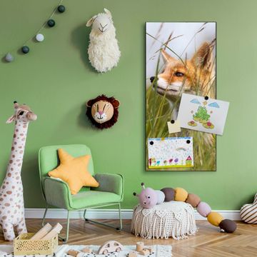 FUNKTION:  Die banjado Magnettafel mit Motiv Fuchs Motiv bringt Ordnung in Ihr Zettelchaos. Fotos, Termine, Notizen oder Rezepte lassen Sich hier stilvoll mit Magneten ordnen, Sie behalten alles im Blick. An der Design Magnettafel halten alle handesüblichen Magnete. DESIGN:  Die magnetische Pinnwand mit dem Motiv Motiv Fuchs ist ein eleganter Begleiter im Alltag. Mit dieser Memotafel aus Metall haben Sie auch ohne Notizen und Magnete ein schönes Dekoelement. Das Format bietet Ihnen ausreichend Platz um alle wichtigen Informationen im Blick zu behalten. DETAILS:  Die Magnettafel besteht aus silber-grau, weiß oder schwarzlackiertem Stahl. Sie hat eine Größe von 37 x 78 x 2cm. Es befinden sich auf der Rückseite vorgefertigte Aufhängungen die eine schnelle und unkomplizierte Anbringung ermöglichen. Das Motiv ist mit einem seidenmatten Laminat versehen und schützt so zusätzlich vor Kratzern. NUTZEN:  Sie können dieses Memoboard groß als Wandbild nutzen, es halten alle handelsüblichen Magneten daran. Die Pinnwand ist mit einem feuchten Lappen oder Schwamm abwischbar. Sie finden bei uns eine große Auswahl an passenden Magneten. BANJADO:  Wir sind ein kleines Team aus dem Herzen von Sachsen. Wir fertigen alle Artikel von Hand für Sie an, Sie erhalten keine preiswerte Importware. Auf Wunsch können Sie auch Ihr eigenes Foto auf die Magnettafel aufbringen, schreiben Sie uns an. Herzlichst, Ihr banjado-Team