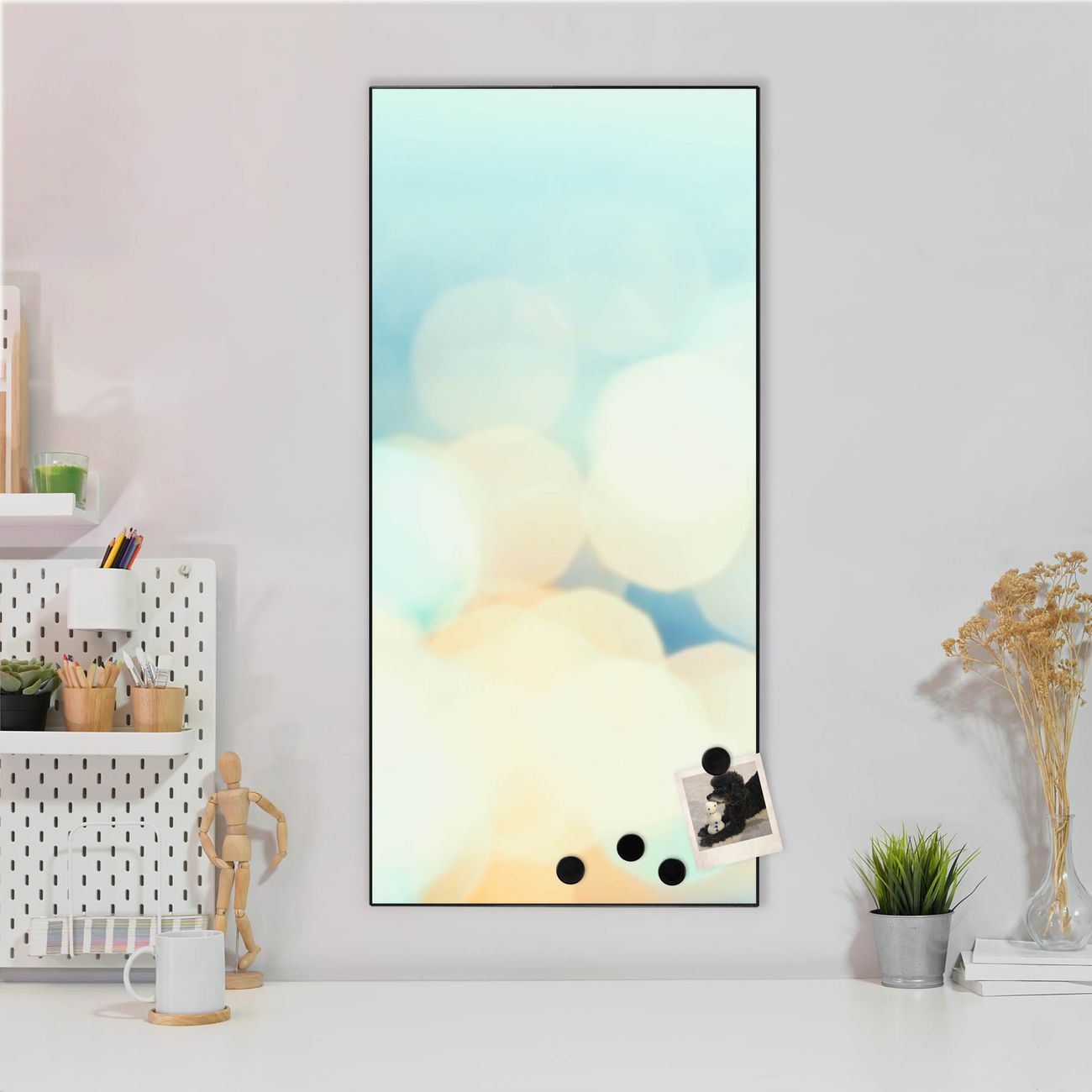 FUNKTION:  Die banjado Magnettafel mit Motiv Funkelnde Lichter Motiv bringt Ordnung in Ihr Zettelchaos. Fotos, Termine, Notizen oder Rezepte lassen Sich hier stilvoll mit Magneten ordnen, Sie behalten alles im Blick. An der Design Magnettafel halten alle handesüblichen Magnete. DESIGN:  Die magnetische Pinnwand mit dem Motiv Motiv Funkelnde Lichter ist ein eleganter Begleiter im Alltag. Mit dieser Memotafel aus Metall haben Sie auch ohne Notizen und Magnete ein schönes Dekoelement. Das Format bietet Ihnen ausreichend Platz um alle wichtigen Informationen im Blick zu behalten. DETAILS:  Die Magnettafel besteht aus silber-grau, weiß oder schwarzlackiertem Stahl. Sie hat eine Größe von 37 x 78 x 2cm. Es befinden sich auf der Rückseite vorgefertigte Aufhängungen die eine schnelle und unkomplizierte Anbringung ermöglichen. Das Motiv ist mit einem seidenmatten Laminat versehen und schützt so zusätzlich vor Kratzern. NUTZEN:  Sie können dieses Memoboard groß als Wandbild nutzen, es halten alle handelsüblichen Magneten daran. Die Pinnwand ist mit einem feuchten Lappen oder Schwamm abwischbar. Sie finden bei uns eine große Auswahl an passenden Magneten. BANJADO:  Wir sind ein kleines Team aus dem Herzen von Sachsen. Wir fertigen alle Artikel von Hand für Sie an, Sie erhalten keine preiswerte Importware. Auf Wunsch können Sie auch Ihr eigenes Foto auf die Magnettafel aufbringen, schreiben Sie uns an. Herzlichst, Ihr banjado-Team