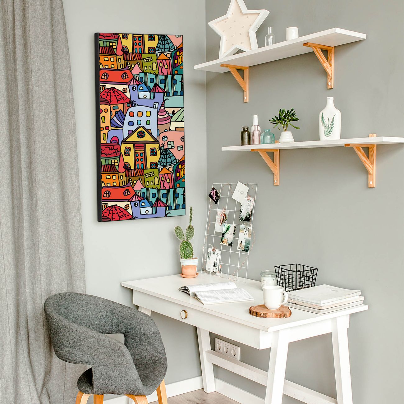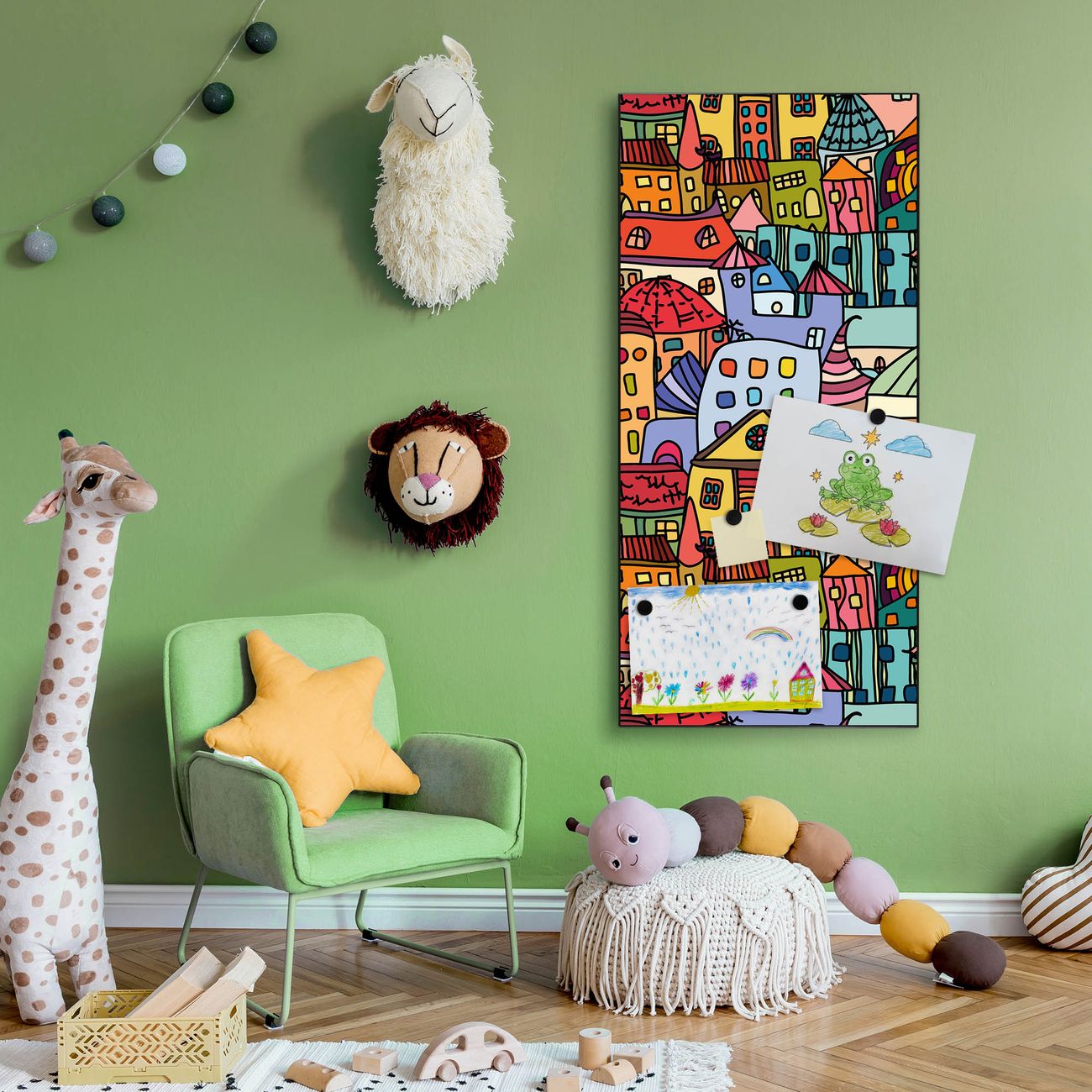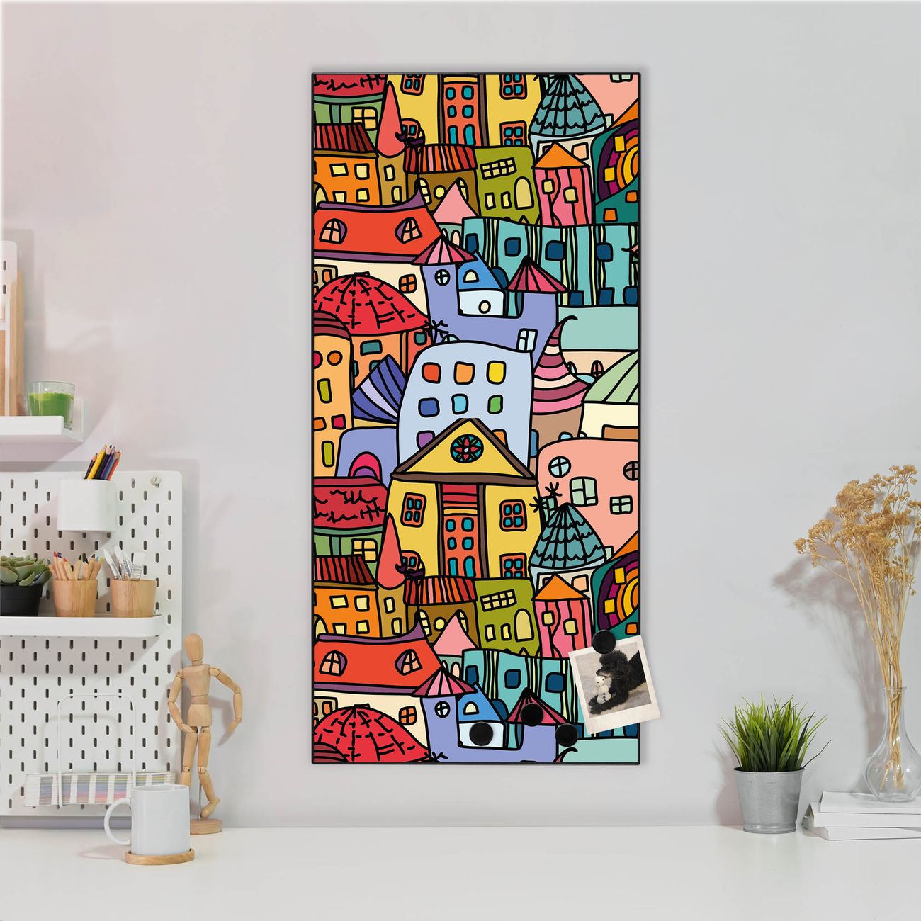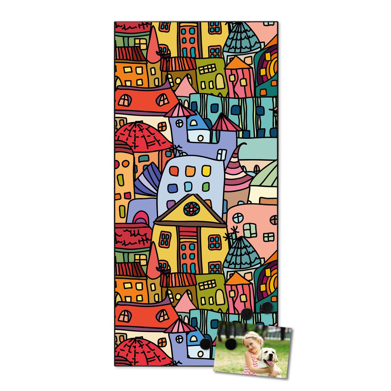 FUNKTION:  Die banjado Magnettafel mit Motiv Funky Town Motiv bringt Ordnung in Ihr Zettelchaos. Fotos, Termine, Notizen oder Rezepte lassen Sich hier stilvoll mit Magneten ordnen, Sie behalten alles im Blick. An der Design Magnettafel halten alle handesüblichen Magnete. DESIGN:  Die magnetische Pinnwand mit dem Motiv Motiv Funky Town ist ein eleganter Begleiter im Alltag. Mit dieser Memotafel aus Metall haben Sie auch ohne Notizen und Magnete ein schönes Dekoelement. Das Format bietet Ihnen ausreichend Platz um alle wichtigen Informationen im Blick zu behalten. DETAILS:  Die Magnettafel besteht aus silber-grau, weiß oder schwarzlackiertem Stahl. Sie hat eine Größe von 37 x 78 x 2cm. Es befinden sich auf der Rückseite vorgefertigte Aufhängungen die eine schnelle und unkomplizierte Anbringung ermöglichen. Das Motiv ist mit einem seidenmatten Laminat versehen und schützt so zusätzlich vor Kratzern. NUTZEN:  Sie können dieses Memoboard groß als Wandbild nutzen, es halten alle handelsüblichen Magneten daran. Die Pinnwand ist mit einem feuchten Lappen oder Schwamm abwischbar. Sie finden bei uns eine große Auswahl an passenden Magneten. BANJADO:  Wir sind ein kleines Team aus dem Herzen von Sachsen. Wir fertigen alle Artikel von Hand für Sie an, Sie erhalten keine preiswerte Importware. Auf Wunsch können Sie auch Ihr eigenes Foto auf die Magnettafel aufbringen, schreiben Sie uns an. Herzlichst, Ihr banjado-Team