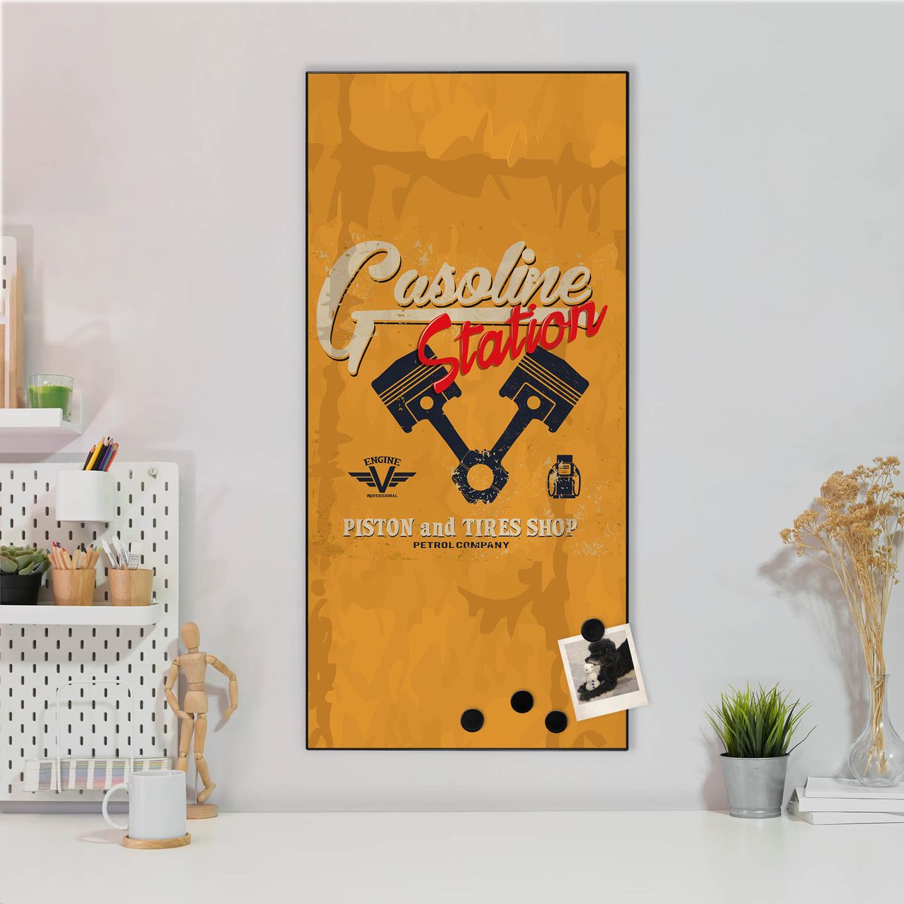 Stahl Magnettafel Hochformat 78x37cm Gasoline Station