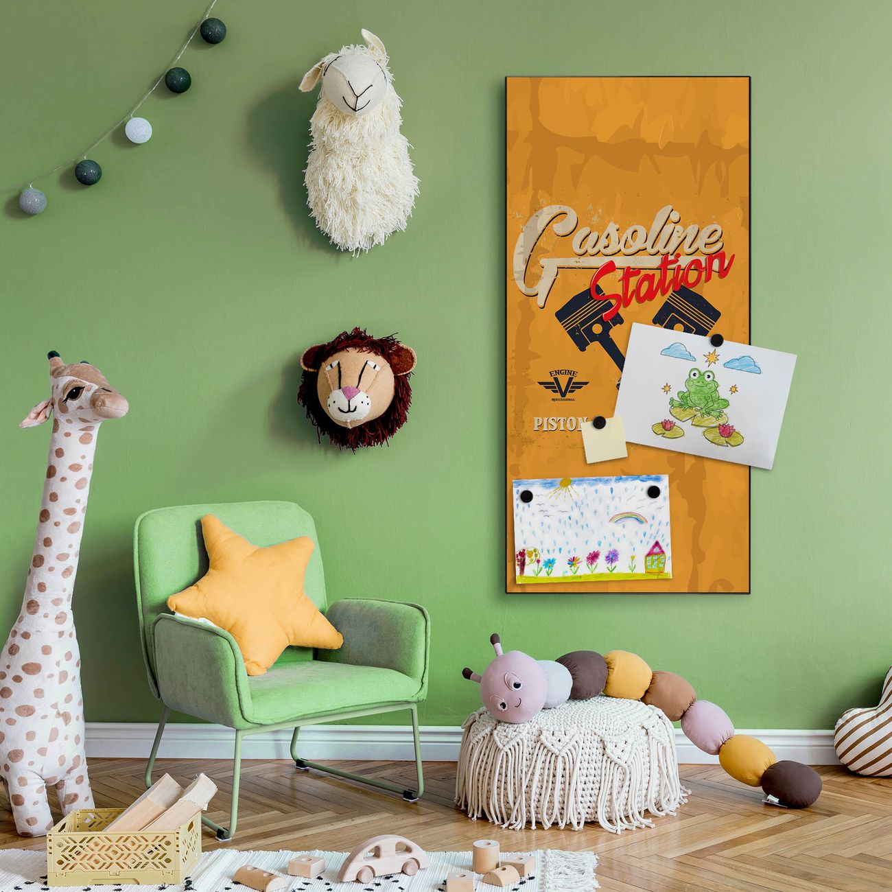 FUNKTION:  Die banjado Magnettafel mit Motiv Gasoline Station Motiv bringt Ordnung in Ihr Zettelchaos. Fotos, Termine, Notizen oder Rezepte lassen Sich hier stilvoll mit Magneten ordnen, Sie behalten alles im Blick. An der Design Magnettafel halten alle handesüblichen Magnete. DESIGN:  Die magnetische Pinnwand mit dem Motiv Motiv Gasoline Station ist ein eleganter Begleiter im Alltag. Mit dieser Memotafel aus Metall haben Sie auch ohne Notizen und Magnete ein schönes Dekoelement. Das Format bietet Ihnen ausreichend Platz um alle wichtigen Informationen im Blick zu behalten. DETAILS:  Die Magnettafel besteht aus silber-grau, weiß oder schwarzlackiertem Stahl. Sie hat eine Größe von 37 x 78 x 2cm. Es befinden sich auf der Rückseite vorgefertigte Aufhängungen die eine schnelle und unkomplizierte Anbringung ermöglichen. Das Motiv ist mit einem seidenmatten Laminat versehen und schützt so zusätzlich vor Kratzern. NUTZEN:  Sie können dieses Memoboard groß als Wandbild nutzen, es halten alle handelsüblichen Magneten daran. Die Pinnwand ist mit einem feuchten Lappen oder Schwamm abwischbar. Sie finden bei uns eine große Auswahl an passenden Magneten. BANJADO:  Wir sind ein kleines Team aus dem Herzen von Sachsen. Wir fertigen alle Artikel von Hand für Sie an, Sie erhalten keine preiswerte Importware. Auf Wunsch können Sie auch Ihr eigenes Foto auf die Magnettafel aufbringen, schreiben Sie uns an. Herzlichst, Ihr banjado-Team
