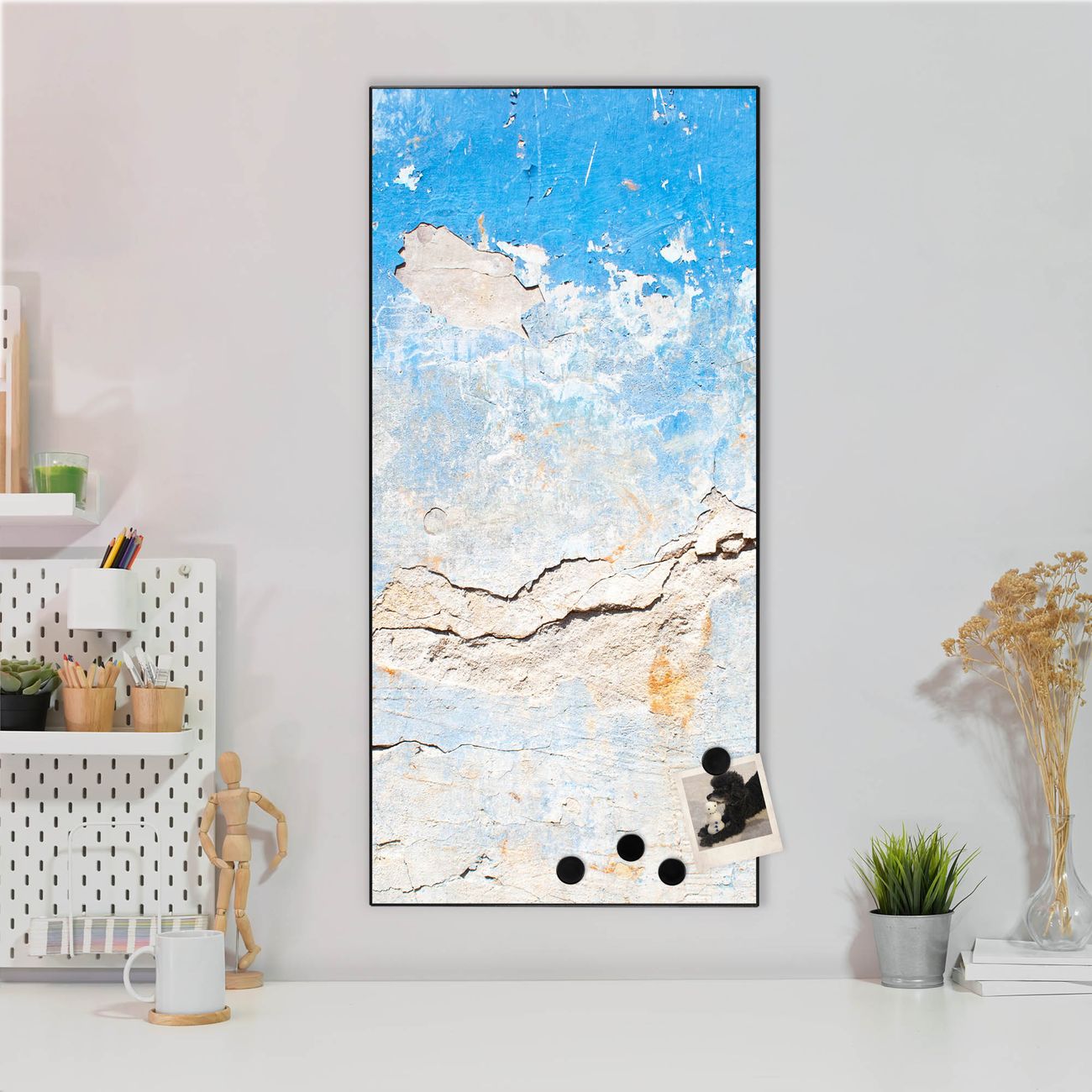 FUNKTION:  Die banjado Magnettafel mit Motiv Gebrochene Wand Motiv bringt Ordnung in Ihr Zettelchaos. Fotos, Termine, Notizen oder Rezepte lassen Sich hier stilvoll mit Magneten ordnen, Sie behalten alles im Blick. An der Design Magnettafel halten alle handesüblichen Magnete. DESIGN:  Die magnetische Pinnwand mit dem Motiv Motiv Gebrochene Wand ist ein eleganter Begleiter im Alltag. Mit dieser Memotafel aus Metall haben Sie auch ohne Notizen und Magnete ein schönes Dekoelement. Das Format bietet Ihnen ausreichend Platz um alle wichtigen Informationen im Blick zu behalten. DETAILS:  Die Magnettafel besteht aus silber-grau, weiß oder schwarzlackiertem Stahl. Sie hat eine Größe von 37 x 78 x 2cm. Es befinden sich auf der Rückseite vorgefertigte Aufhängungen die eine schnelle und unkomplizierte Anbringung ermöglichen. Das Motiv ist mit einem seidenmatten Laminat versehen und schützt so zusätzlich vor Kratzern. NUTZEN:  Sie können dieses Memoboard groß als Wandbild nutzen, es halten alle handelsüblichen Magneten daran. Die Pinnwand ist mit einem feuchten Lappen oder Schwamm abwischbar. Sie finden bei uns eine große Auswahl an passenden Magneten. BANJADO:  Wir sind ein kleines Team aus dem Herzen von Sachsen. Wir fertigen alle Artikel von Hand für Sie an, Sie erhalten keine preiswerte Importware. Auf Wunsch können Sie auch Ihr eigenes Foto auf die Magnettafel aufbringen, schreiben Sie uns an. Herzlichst, Ihr banjado-Team