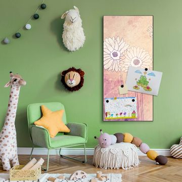 FUNKTION:  Die banjado Magnettafel mit Motiv Gerbera Motiv bringt Ordnung in Ihr Zettelchaos. Fotos, Termine, Notizen oder Rezepte lassen Sich hier stilvoll mit Magneten ordnen, Sie behalten alles im Blick. An der Design Magnettafel halten alle handesüblichen Magnete. DESIGN:  Die magnetische Pinnwand mit dem Motiv Motiv Gerbera ist ein eleganter Begleiter im Alltag. Mit dieser Memotafel aus Metall haben Sie auch ohne Notizen und Magnete ein schönes Dekoelement. Das Format bietet Ihnen ausreichend Platz um alle wichtigen Informationen im Blick zu behalten. DETAILS:  Die Magnettafel besteht aus silber-grau, weiß oder schwarzlackiertem Stahl. Sie hat eine Größe von 37 x 78 x 2cm. Es befinden sich auf der Rückseite vorgefertigte Aufhängungen die eine schnelle und unkomplizierte Anbringung ermöglichen. Das Motiv ist mit einem seidenmatten Laminat versehen und schützt so zusätzlich vor Kratzern. NUTZEN:  Sie können dieses Memoboard groß als Wandbild nutzen, es halten alle handelsüblichen Magneten daran. Die Pinnwand ist mit einem feuchten Lappen oder Schwamm abwischbar. Sie finden bei uns eine große Auswahl an passenden Magneten. BANJADO:  Wir sind ein kleines Team aus dem Herzen von Sachsen. Wir fertigen alle Artikel von Hand für Sie an, Sie erhalten keine preiswerte Importware. Auf Wunsch können Sie auch Ihr eigenes Foto auf die Magnettafel aufbringen, schreiben Sie uns an. Herzlichst, Ihr banjado-Team