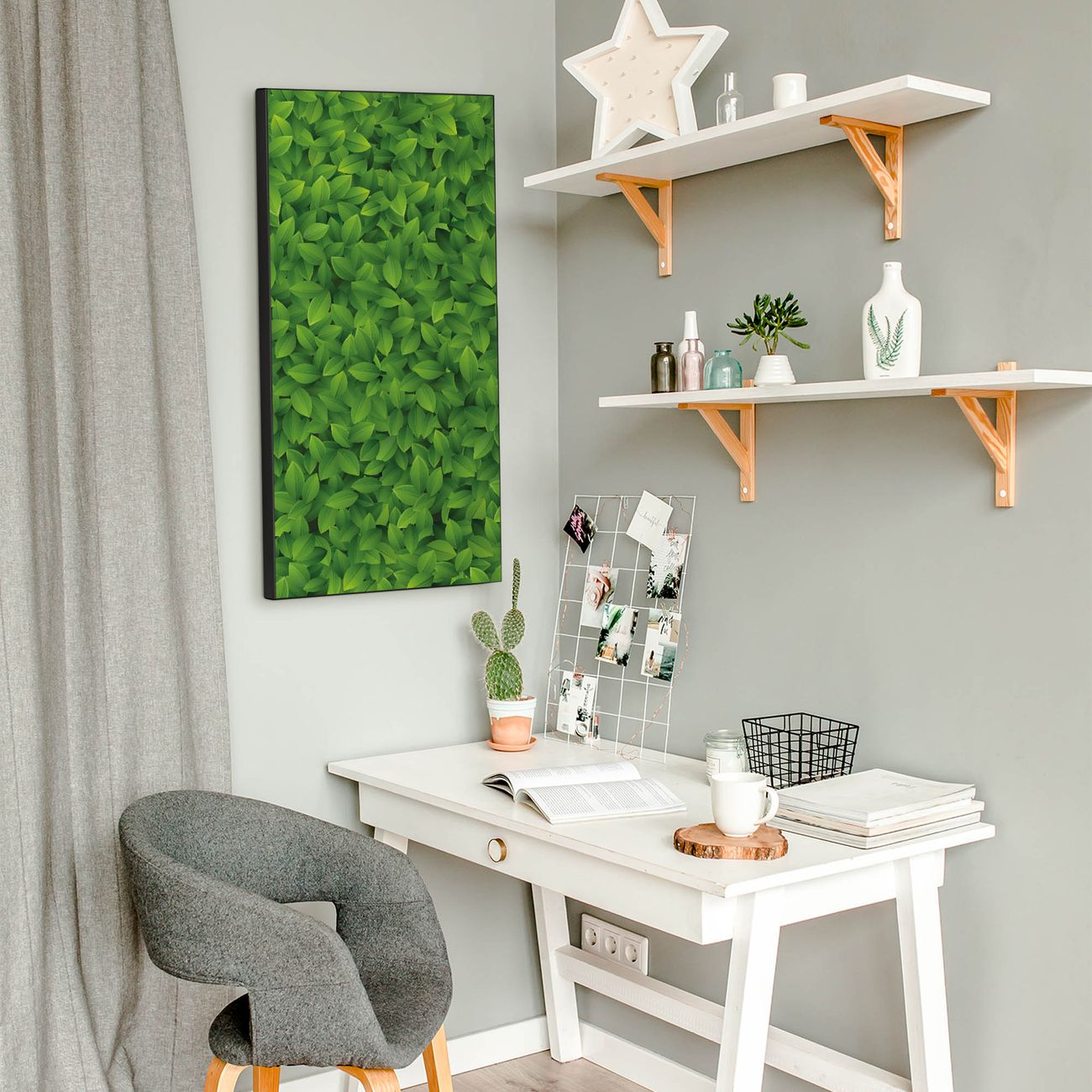 FUNKTION:  Die banjado Magnettafel mit Motiv Grüne Blätter Motiv bringt Ordnung in Ihr Zettelchaos. Fotos, Termine, Notizen oder Rezepte lassen Sich hier stilvoll mit Magneten ordnen, Sie behalten alles im Blick. An der Design Magnettafel halten alle handesüblichen Magnete. DESIGN:  Die magnetische Pinnwand mit dem Motiv Motiv Grüne Blätter ist ein eleganter Begleiter im Alltag. Mit dieser Memotafel aus Metall haben Sie auch ohne Notizen und Magnete ein schönes Dekoelement. Das Format bietet Ihnen ausreichend Platz um alle wichtigen Informationen im Blick zu behalten. DETAILS:  Die Magnettafel besteht aus silber-grau, weiß oder schwarzlackiertem Stahl. Sie hat eine Größe von 37 x 78 x 2cm. Es befinden sich auf der Rückseite vorgefertigte Aufhängungen die eine schnelle und unkomplizierte Anbringung ermöglichen. Das Motiv ist mit einem seidenmatten Laminat versehen und schützt so zusätzlich vor Kratzern. NUTZEN:  Sie können dieses Memoboard groß als Wandbild nutzen, es halten alle handelsüblichen Magneten daran. Die Pinnwand ist mit einem feuchten Lappen oder Schwamm abwischbar. Sie finden bei uns eine große Auswahl an passenden Magneten. BANJADO:  Wir sind ein kleines Team aus dem Herzen von Sachsen. Wir fertigen alle Artikel von Hand für Sie an, Sie erhalten keine preiswerte Importware. Auf Wunsch können Sie auch Ihr eigenes Foto auf die Magnettafel aufbringen, schreiben Sie uns an. Herzlichst, Ihr banjado-Team