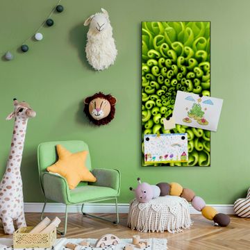FUNKTION:  Die banjado Magnettafel mit Motiv Grüne Chrysantheme Motiv bringt Ordnung in Ihr Zettelchaos. Fotos, Termine, Notizen oder Rezepte lassen Sich hier stilvoll mit Magneten ordnen, Sie behalten alles im Blick. An der Design Magnettafel halten alle handesüblichen Magnete. DESIGN:  Die magnetische Pinnwand mit dem Motiv Motiv Grüne Chrysantheme ist ein eleganter Begleiter im Alltag. Mit dieser Memotafel aus Metall haben Sie auch ohne Notizen und Magnete ein schönes Dekoelement. Das Format bietet Ihnen ausreichend Platz um alle wichtigen Informationen im Blick zu behalten. DETAILS:  Die Magnettafel besteht aus silber-grau, weiß oder schwarzlackiertem Stahl. Sie hat eine Größe von 37 x 78 x 2cm. Es befinden sich auf der Rückseite vorgefertigte Aufhängungen die eine schnelle und unkomplizierte Anbringung ermöglichen. Das Motiv ist mit einem seidenmatten Laminat versehen und schützt so zusätzlich vor Kratzern. NUTZEN:  Sie können dieses Memoboard groß als Wandbild nutzen, es halten alle handelsüblichen Magneten daran. Die Pinnwand ist mit einem feuchten Lappen oder Schwamm abwischbar. Sie finden bei uns eine große Auswahl an passenden Magneten. BANJADO:  Wir sind ein kleines Team aus dem Herzen von Sachsen. Wir fertigen alle Artikel von Hand für Sie an, Sie erhalten keine preiswerte Importware. Auf Wunsch können Sie auch Ihr eigenes Foto auf die Magnettafel aufbringen, schreiben Sie uns an. Herzlichst, Ihr banjado-Team