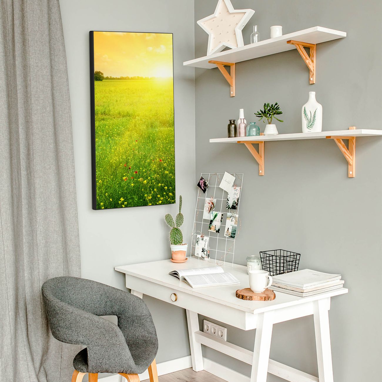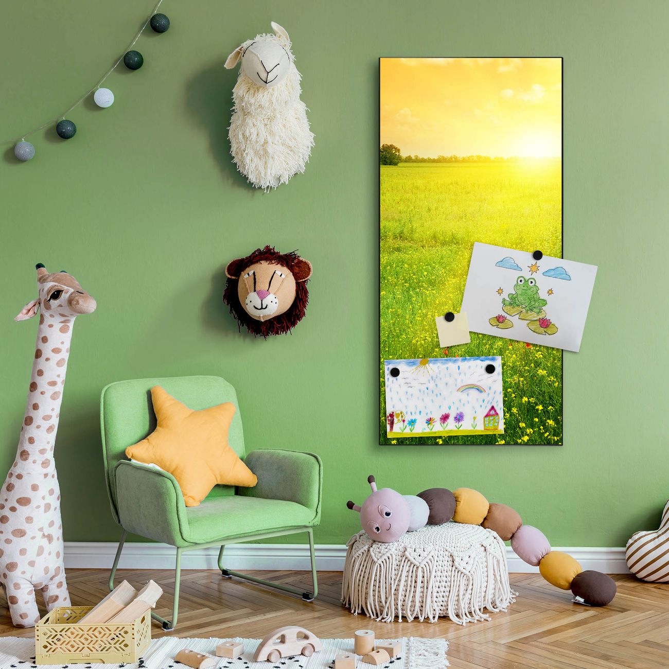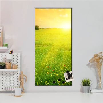 FUNKTION:  Die banjado Magnettafel mit Motiv Guten Morgen 2 Motiv bringt Ordnung in Ihr Zettelchaos. Fotos, Termine, Notizen oder Rezepte lassen Sich hier stilvoll mit Magneten ordnen, Sie behalten alles im Blick. An der Design Magnettafel halten alle handesüblichen Magnete. DESIGN:  Die magnetische Pinnwand mit dem Motiv Motiv Guten Morgen 2 ist ein eleganter Begleiter im Alltag. Mit dieser Memotafel aus Metall haben Sie auch ohne Notizen und Magnete ein schönes Dekoelement. Das Format bietet Ihnen ausreichend Platz um alle wichtigen Informationen im Blick zu behalten. DETAILS:  Die Magnettafel besteht aus silber-grau, weiß oder schwarzlackiertem Stahl. Sie hat eine Größe von 37 x 78 x 2cm. Es befinden sich auf der Rückseite vorgefertigte Aufhängungen die eine schnelle und unkomplizierte Anbringung ermöglichen. Das Motiv ist mit einem seidenmatten Laminat versehen und schützt so zusätzlich vor Kratzern. NUTZEN:  Sie können dieses Memoboard groß als Wandbild nutzen, es halten alle handelsüblichen Magneten daran. Die Pinnwand ist mit einem feuchten Lappen oder Schwamm abwischbar. Sie finden bei uns eine große Auswahl an passenden Magneten. BANJADO:  Wir sind ein kleines Team aus dem Herzen von Sachsen. Wir fertigen alle Artikel von Hand für Sie an, Sie erhalten keine preiswerte Importware. Auf Wunsch können Sie auch Ihr eigenes Foto auf die Magnettafel aufbringen, schreiben Sie uns an. Herzlichst, Ihr banjado-Team