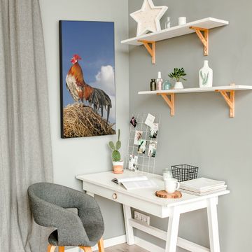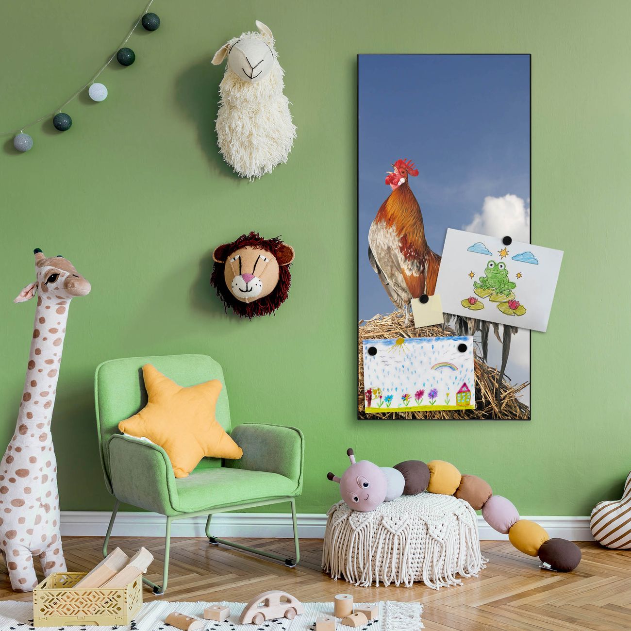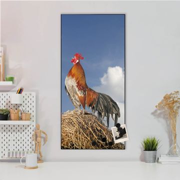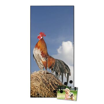 FUNKTION:  Die banjado Magnettafel mit Motiv Hahn Motiv bringt Ordnung in Ihr Zettelchaos. Fotos, Termine, Notizen oder Rezepte lassen Sich hier stilvoll mit Magneten ordnen, Sie behalten alles im Blick. An der Design Magnettafel halten alle handesüblichen Magnete. DESIGN:  Die magnetische Pinnwand mit dem Motiv Motiv Hahn ist ein eleganter Begleiter im Alltag. Mit dieser Memotafel aus Metall haben Sie auch ohne Notizen und Magnete ein schönes Dekoelement. Das Format bietet Ihnen ausreichend Platz um alle wichtigen Informationen im Blick zu behalten. DETAILS:  Die Magnettafel besteht aus silber-grau, weiß oder schwarzlackiertem Stahl. Sie hat eine Größe von 37 x 78 x 2cm. Es befinden sich auf der Rückseite vorgefertigte Aufhängungen die eine schnelle und unkomplizierte Anbringung ermöglichen. Das Motiv ist mit einem seidenmatten Laminat versehen und schützt so zusätzlich vor Kratzern. NUTZEN:  Sie können dieses Memoboard groß als Wandbild nutzen, es halten alle handelsüblichen Magneten daran. Die Pinnwand ist mit einem feuchten Lappen oder Schwamm abwischbar. Sie finden bei uns eine große Auswahl an passenden Magneten. BANJADO:  Wir sind ein kleines Team aus dem Herzen von Sachsen. Wir fertigen alle Artikel von Hand für Sie an, Sie erhalten keine preiswerte Importware. Auf Wunsch können Sie auch Ihr eigenes Foto auf die Magnettafel aufbringen, schreiben Sie uns an. Herzlichst, Ihr banjado-Team