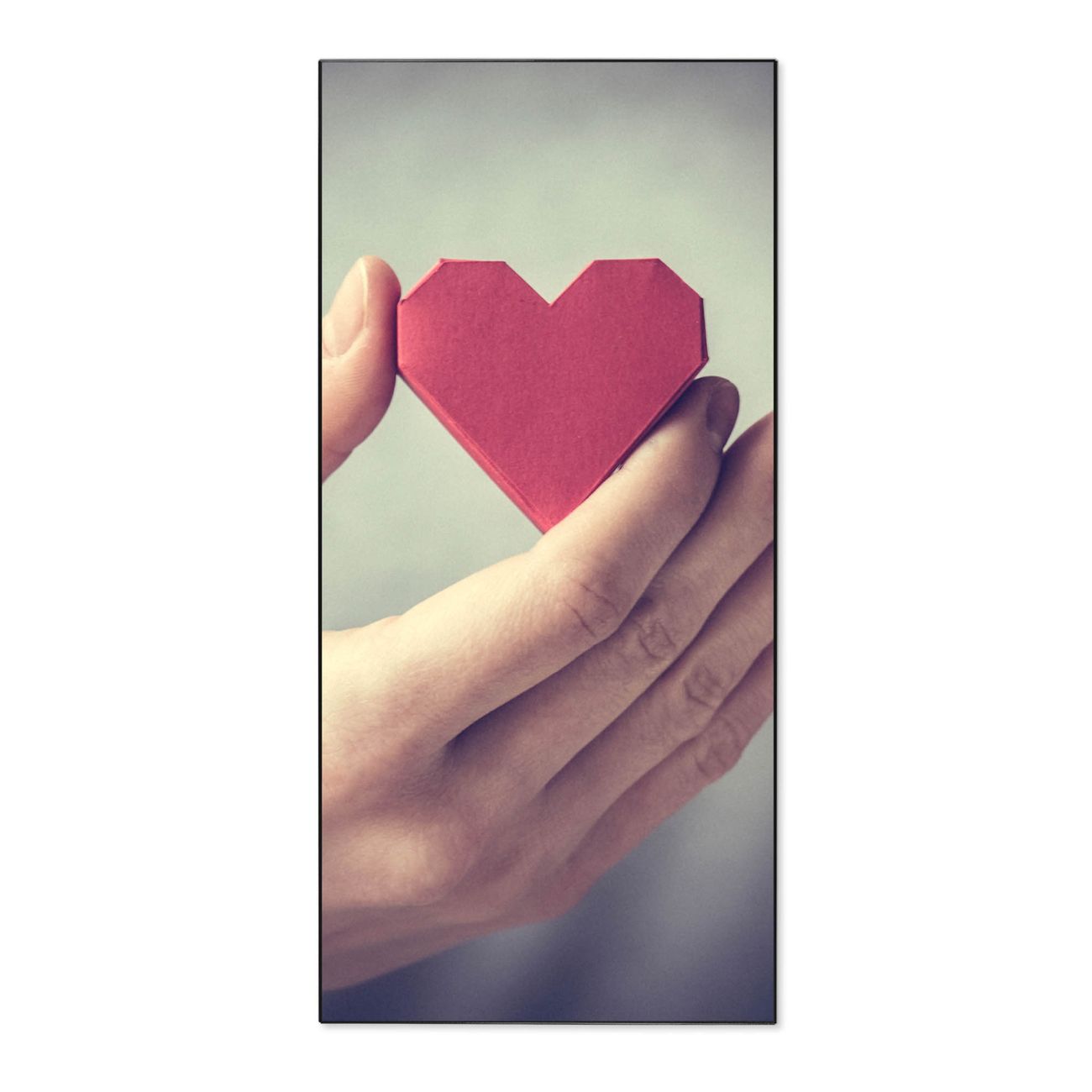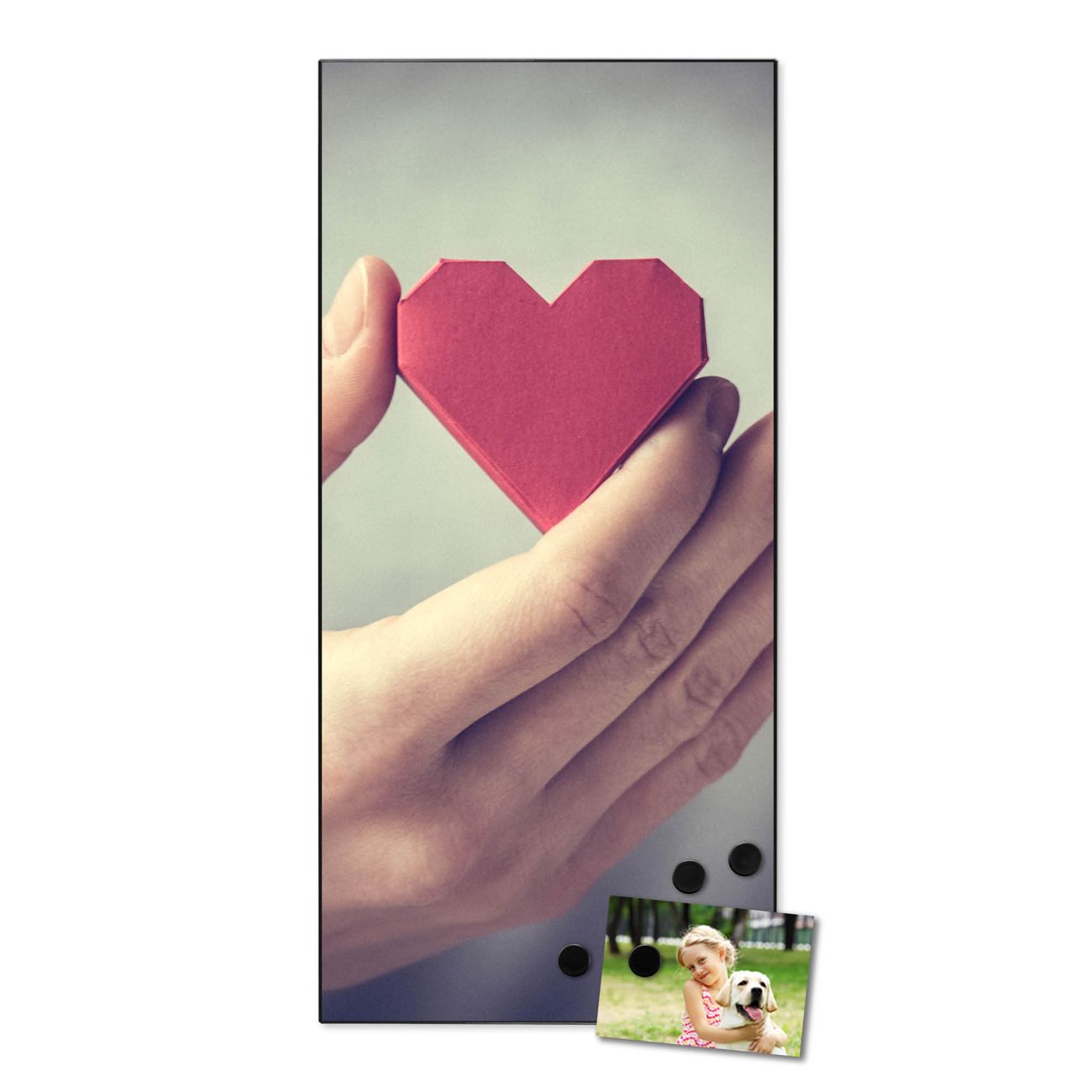 FUNKTION:  Die banjado Magnettafel mit Motiv Hand Aufs Herz Motiv bringt Ordnung in Ihr Zettelchaos. Fotos, Termine, Notizen oder Rezepte lassen Sich hier stilvoll mit Magneten ordnen, Sie behalten alles im Blick. An der Design Magnettafel halten alle handesüblichen Magnete. DESIGN:  Die magnetische Pinnwand mit dem Motiv Motiv Hand Aufs Herz ist ein eleganter Begleiter im Alltag. Mit dieser Memotafel aus Metall haben Sie auch ohne Notizen und Magnete ein schönes Dekoelement. Das Format bietet Ihnen ausreichend Platz um alle wichtigen Informationen im Blick zu behalten. DETAILS:  Die Magnettafel besteht aus silber-grau, weiß oder schwarzlackiertem Stahl. Sie hat eine Größe von 37 x 78 x 2cm. Es befinden sich auf der Rückseite vorgefertigte Aufhängungen die eine schnelle und unkomplizierte Anbringung ermöglichen. Das Motiv ist mit einem seidenmatten Laminat versehen und schützt so zusätzlich vor Kratzern. NUTZEN:  Sie können dieses Memoboard groß als Wandbild nutzen, es halten alle handelsüblichen Magneten daran. Die Pinnwand ist mit einem feuchten Lappen oder Schwamm abwischbar. Sie finden bei uns eine große Auswahl an passenden Magneten. BANJADO:  Wir sind ein kleines Team aus dem Herzen von Sachsen. Wir fertigen alle Artikel von Hand für Sie an, Sie erhalten keine preiswerte Importware. Auf Wunsch können Sie auch Ihr eigenes Foto auf die Magnettafel aufbringen, schreiben Sie uns an. Herzlichst, Ihr banjado-Team