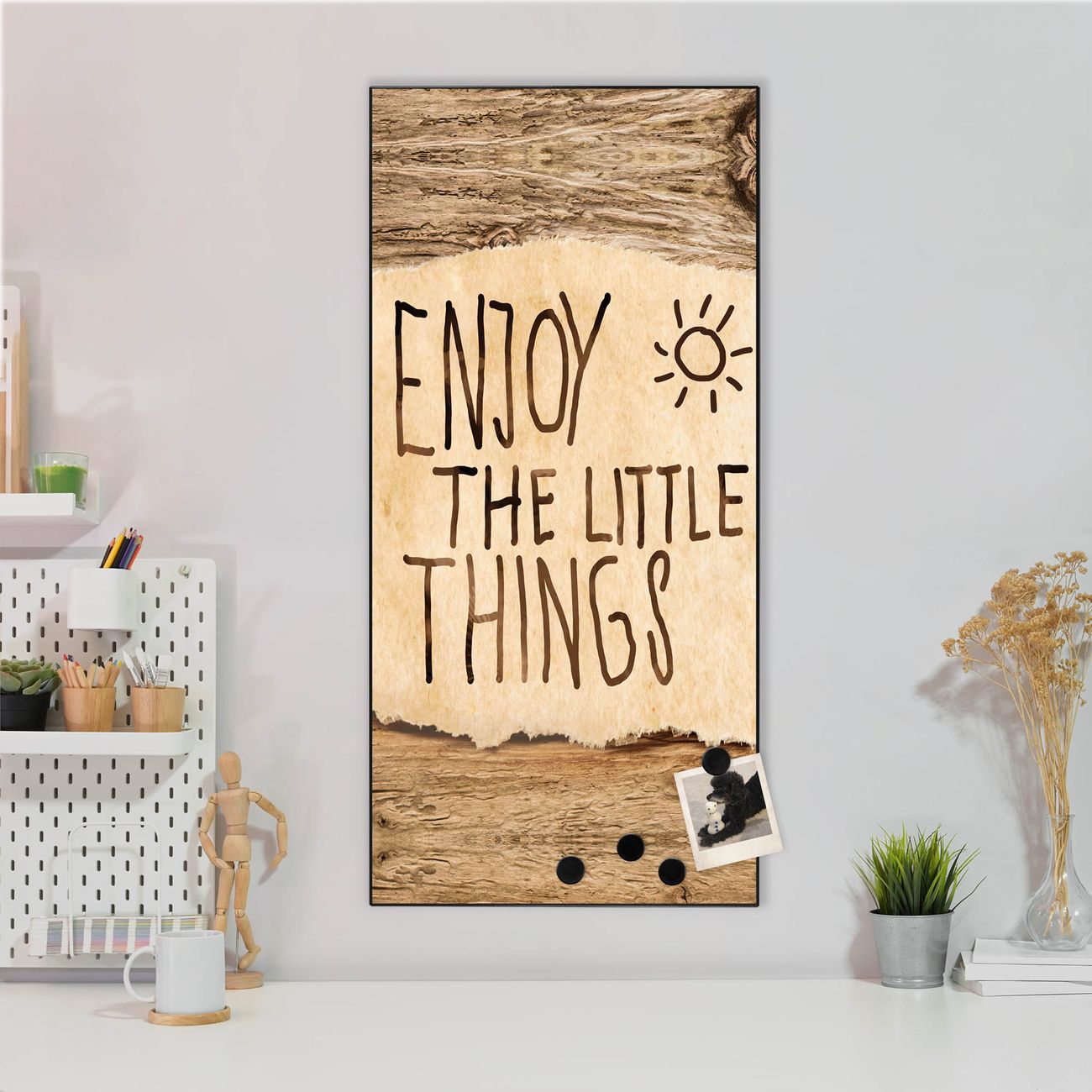 FUNKTION:  Die banjado Magnettafel mit Motiv Happy Day Motiv bringt Ordnung in Ihr Zettelchaos. Fotos, Termine, Notizen oder Rezepte lassen Sich hier stilvoll mit Magneten ordnen, Sie behalten alles im Blick. An der Design Magnettafel halten alle handesüblichen Magnete. DESIGN:  Die magnetische Pinnwand mit dem Motiv Motiv Happy Day ist ein eleganter Begleiter im Alltag. Mit dieser Memotafel aus Metall haben Sie auch ohne Notizen und Magnete ein schönes Dekoelement. Das Format bietet Ihnen ausreichend Platz um alle wichtigen Informationen im Blick zu behalten. DETAILS:  Die Magnettafel besteht aus silber-grau, weiß oder schwarzlackiertem Stahl. Sie hat eine Größe von 37 x 78 x 2cm. Es befinden sich auf der Rückseite vorgefertigte Aufhängungen die eine schnelle und unkomplizierte Anbringung ermöglichen. Das Motiv ist mit einem seidenmatten Laminat versehen und schützt so zusätzlich vor Kratzern. NUTZEN:  Sie können dieses Memoboard groß als Wandbild nutzen, es halten alle handelsüblichen Magneten daran. Die Pinnwand ist mit einem feuchten Lappen oder Schwamm abwischbar. Sie finden bei uns eine große Auswahl an passenden Magneten. BANJADO:  Wir sind ein kleines Team aus dem Herzen von Sachsen. Wir fertigen alle Artikel von Hand für Sie an, Sie erhalten keine preiswerte Importware. Auf Wunsch können Sie auch Ihr eigenes Foto auf die Magnettafel aufbringen, schreiben Sie uns an. Herzlichst, Ihr banjado-Team