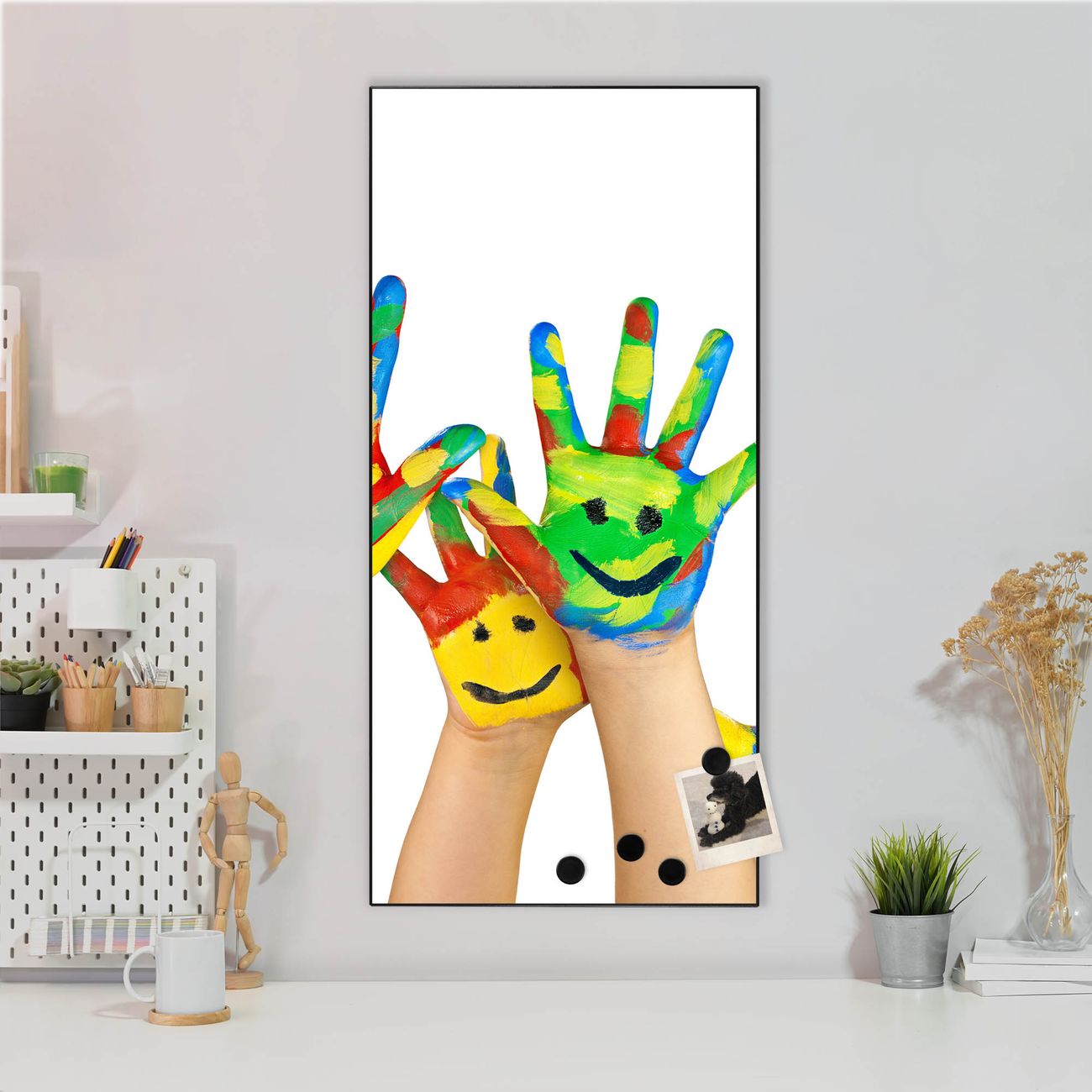 Stahl Magnettafel Hochformat 78x37cm Happy Hands