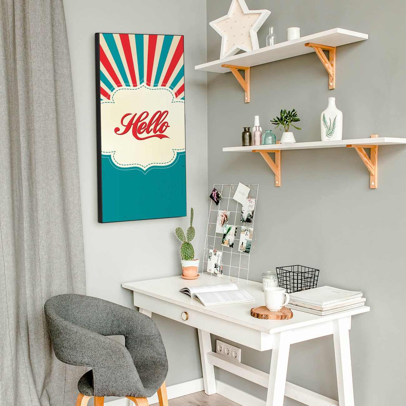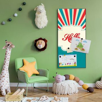 FUNKTION:  Die banjado Magnettafel mit Motiv Hello Motiv bringt Ordnung in Ihr Zettelchaos. Fotos, Termine, Notizen oder Rezepte lassen Sich hier stilvoll mit Magneten ordnen, Sie behalten alles im Blick. An der Design Magnettafel halten alle handesüblichen Magnete. DESIGN:  Die magnetische Pinnwand mit dem Motiv Motiv Hello ist ein eleganter Begleiter im Alltag. Mit dieser Memotafel aus Metall haben Sie auch ohne Notizen und Magnete ein schönes Dekoelement. Das Format bietet Ihnen ausreichend Platz um alle wichtigen Informationen im Blick zu behalten. DETAILS:  Die Magnettafel besteht aus silber-grau, weiß oder schwarzlackiertem Stahl. Sie hat eine Größe von 37 x 78 x 2cm. Es befinden sich auf der Rückseite vorgefertigte Aufhängungen die eine schnelle und unkomplizierte Anbringung ermöglichen. Das Motiv ist mit einem seidenmatten Laminat versehen und schützt so zusätzlich vor Kratzern. NUTZEN:  Sie können dieses Memoboard groß als Wandbild nutzen, es halten alle handelsüblichen Magneten daran. Die Pinnwand ist mit einem feuchten Lappen oder Schwamm abwischbar. Sie finden bei uns eine große Auswahl an passenden Magneten. BANJADO:  Wir sind ein kleines Team aus dem Herzen von Sachsen. Wir fertigen alle Artikel von Hand für Sie an, Sie erhalten keine preiswerte Importware. Auf Wunsch können Sie auch Ihr eigenes Foto auf die Magnettafel aufbringen, schreiben Sie uns an. Herzlichst, Ihr banjado-Team