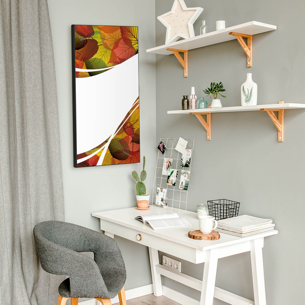 FUNKTION:  Die banjado Magnettafel mit Motiv Herbstlaub Motiv bringt Ordnung in Ihr Zettelchaos. Fotos, Termine, Notizen oder Rezepte lassen Sich hier stilvoll mit Magneten ordnen, Sie behalten alles im Blick. An der Design Magnettafel halten alle handesüblichen Magnete. DESIGN:  Die magnetische Pinnwand mit dem Motiv Motiv Herbstlaub ist ein eleganter Begleiter im Alltag. Mit dieser Memotafel aus Metall haben Sie auch ohne Notizen und Magnete ein schönes Dekoelement. Das Format bietet Ihnen ausreichend Platz um alle wichtigen Informationen im Blick zu behalten. DETAILS:  Die Magnettafel besteht aus silber-grau, weiß oder schwarzlackiertem Stahl. Sie hat eine Größe von 37 x 78 x 2cm. Es befinden sich auf der Rückseite vorgefertigte Aufhängungen die eine schnelle und unkomplizierte Anbringung ermöglichen. Das Motiv ist mit einem seidenmatten Laminat versehen und schützt so zusätzlich vor Kratzern. NUTZEN:  Sie können dieses Memoboard groß als Wandbild nutzen, es halten alle handelsüblichen Magneten daran. Die Pinnwand ist mit einem feuchten Lappen oder Schwamm abwischbar. Sie finden bei uns eine große Auswahl an passenden Magneten. BANJADO:  Wir sind ein kleines Team aus dem Herzen von Sachsen. Wir fertigen alle Artikel von Hand für Sie an, Sie erhalten keine preiswerte Importware. Auf Wunsch können Sie auch Ihr eigenes Foto auf die Magnettafel aufbringen, schreiben Sie uns an. Herzlichst, Ihr banjado-Team