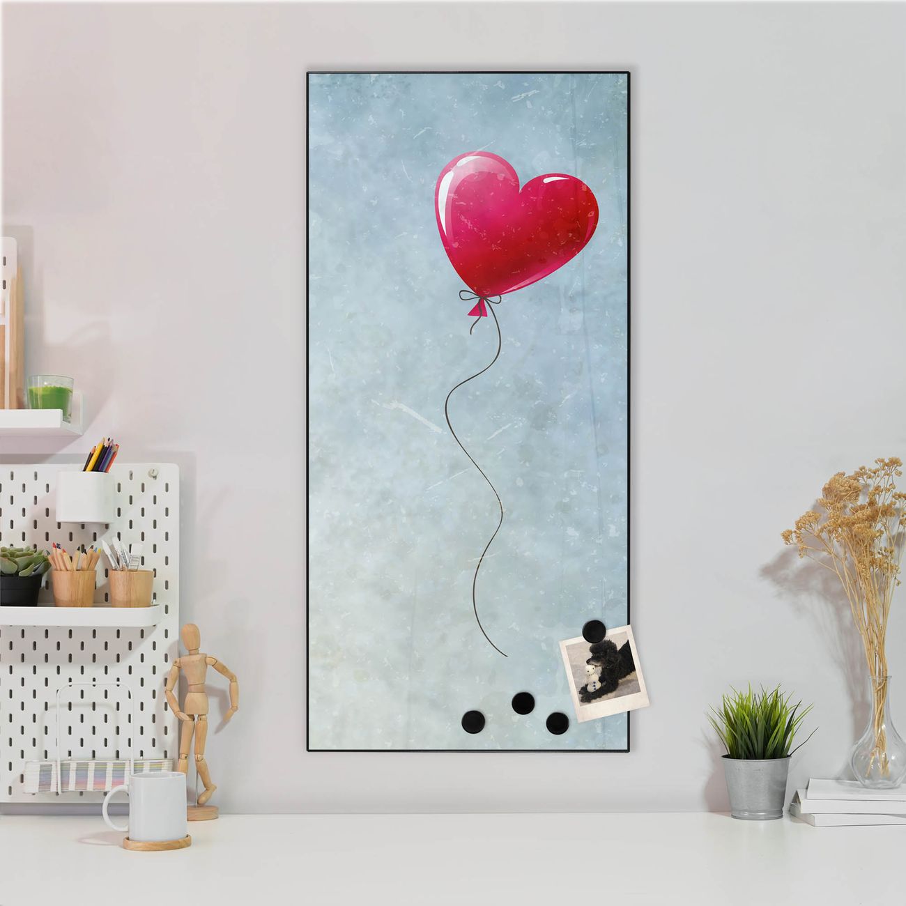 Stahl Magnettafel Hochformat 78x37cm Herzballon