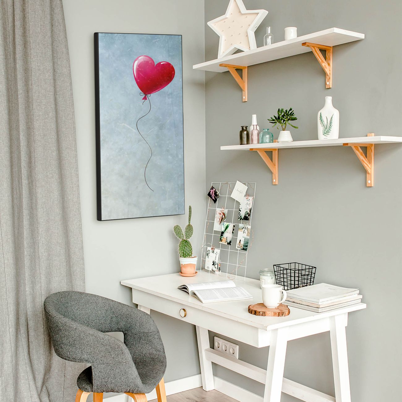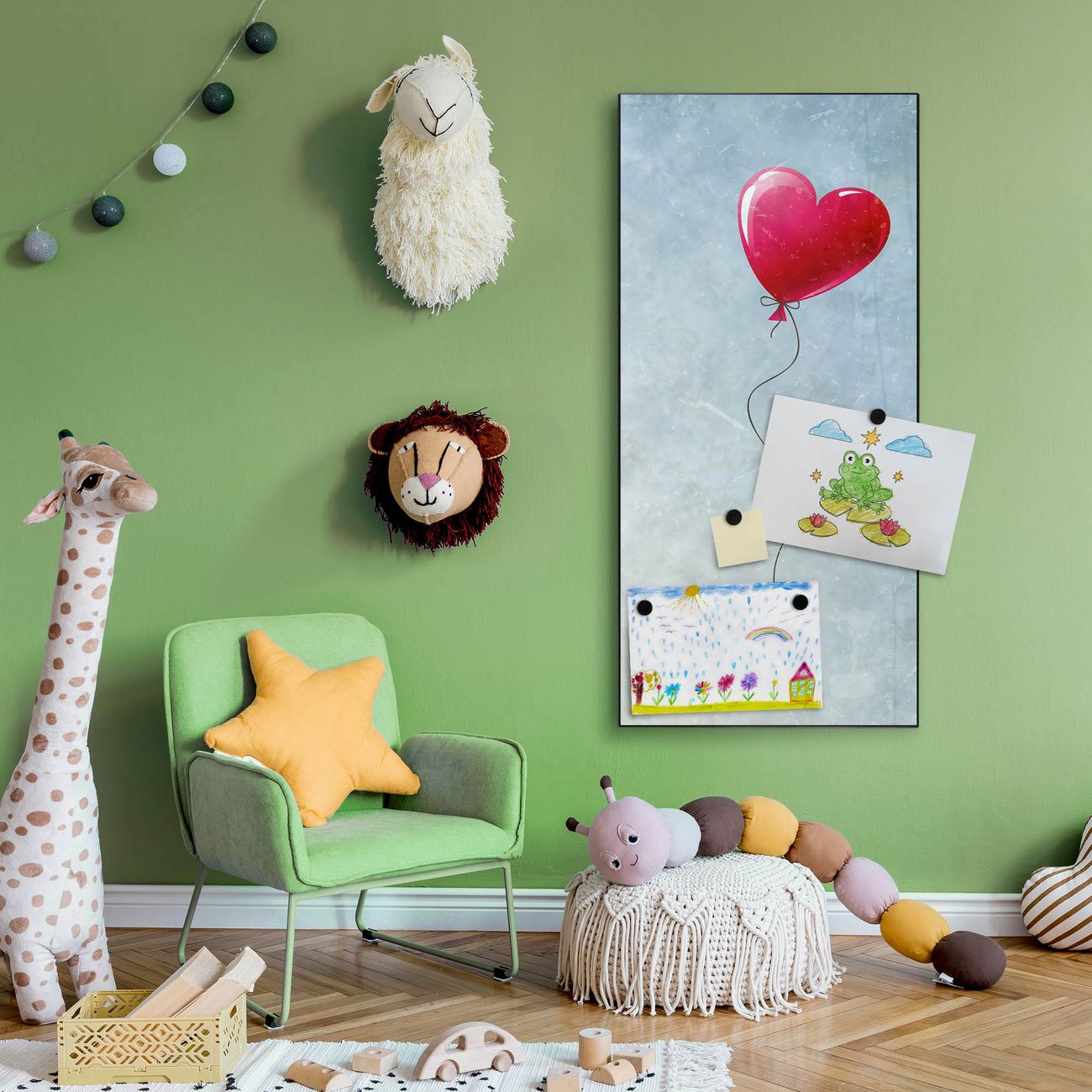 FUNKTION:  Die banjado Magnettafel mit Motiv Herzballon Motiv bringt Ordnung in Ihr Zettelchaos. Fotos, Termine, Notizen oder Rezepte lassen Sich hier stilvoll mit Magneten ordnen, Sie behalten alles im Blick. An der Design Magnettafel halten alle handesüblichen Magnete. DESIGN:  Die magnetische Pinnwand mit dem Motiv Motiv Herzballon ist ein eleganter Begleiter im Alltag. Mit dieser Memotafel aus Metall haben Sie auch ohne Notizen und Magnete ein schönes Dekoelement. Das Format bietet Ihnen ausreichend Platz um alle wichtigen Informationen im Blick zu behalten. DETAILS:  Die Magnettafel besteht aus silber-grau, weiß oder schwarzlackiertem Stahl. Sie hat eine Größe von 37 x 78 x 2cm. Es befinden sich auf der Rückseite vorgefertigte Aufhängungen die eine schnelle und unkomplizierte Anbringung ermöglichen. Das Motiv ist mit einem seidenmatten Laminat versehen und schützt so zusätzlich vor Kratzern. NUTZEN:  Sie können dieses Memoboard groß als Wandbild nutzen, es halten alle handelsüblichen Magneten daran. Die Pinnwand ist mit einem feuchten Lappen oder Schwamm abwischbar. Sie finden bei uns eine große Auswahl an passenden Magneten. BANJADO:  Wir sind ein kleines Team aus dem Herzen von Sachsen. Wir fertigen alle Artikel von Hand für Sie an, Sie erhalten keine preiswerte Importware. Auf Wunsch können Sie auch Ihr eigenes Foto auf die Magnettafel aufbringen, schreiben Sie uns an. Herzlichst, Ihr banjado-Team
