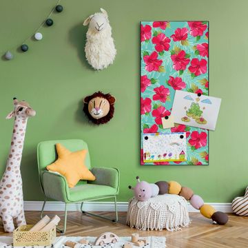 FUNKTION:  Die banjado Magnettafel mit Motiv Hibiskus Motiv bringt Ordnung in Ihr Zettelchaos. Fotos, Termine, Notizen oder Rezepte lassen Sich hier stilvoll mit Magneten ordnen, Sie behalten alles im Blick. An der Design Magnettafel halten alle handesüblichen Magnete. DESIGN:  Die magnetische Pinnwand mit dem Motiv Motiv Hibiskus ist ein eleganter Begleiter im Alltag. Mit dieser Memotafel aus Metall haben Sie auch ohne Notizen und Magnete ein schönes Dekoelement. Das Format bietet Ihnen ausreichend Platz um alle wichtigen Informationen im Blick zu behalten. DETAILS:  Die Magnettafel besteht aus silber-grau, weiß oder schwarzlackiertem Stahl. Sie hat eine Größe von 37 x 78 x 2cm. Es befinden sich auf der Rückseite vorgefertigte Aufhängungen die eine schnelle und unkomplizierte Anbringung ermöglichen. Das Motiv ist mit einem seidenmatten Laminat versehen und schützt so zusätzlich vor Kratzern. NUTZEN:  Sie können dieses Memoboard groß als Wandbild nutzen, es halten alle handelsüblichen Magneten daran. Die Pinnwand ist mit einem feuchten Lappen oder Schwamm abwischbar. Sie finden bei uns eine große Auswahl an passenden Magneten. BANJADO:  Wir sind ein kleines Team aus dem Herzen von Sachsen. Wir fertigen alle Artikel von Hand für Sie an, Sie erhalten keine preiswerte Importware. Auf Wunsch können Sie auch Ihr eigenes Foto auf die Magnettafel aufbringen, schreiben Sie uns an. Herzlichst, Ihr banjado-Team