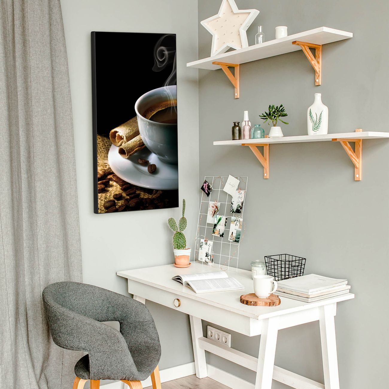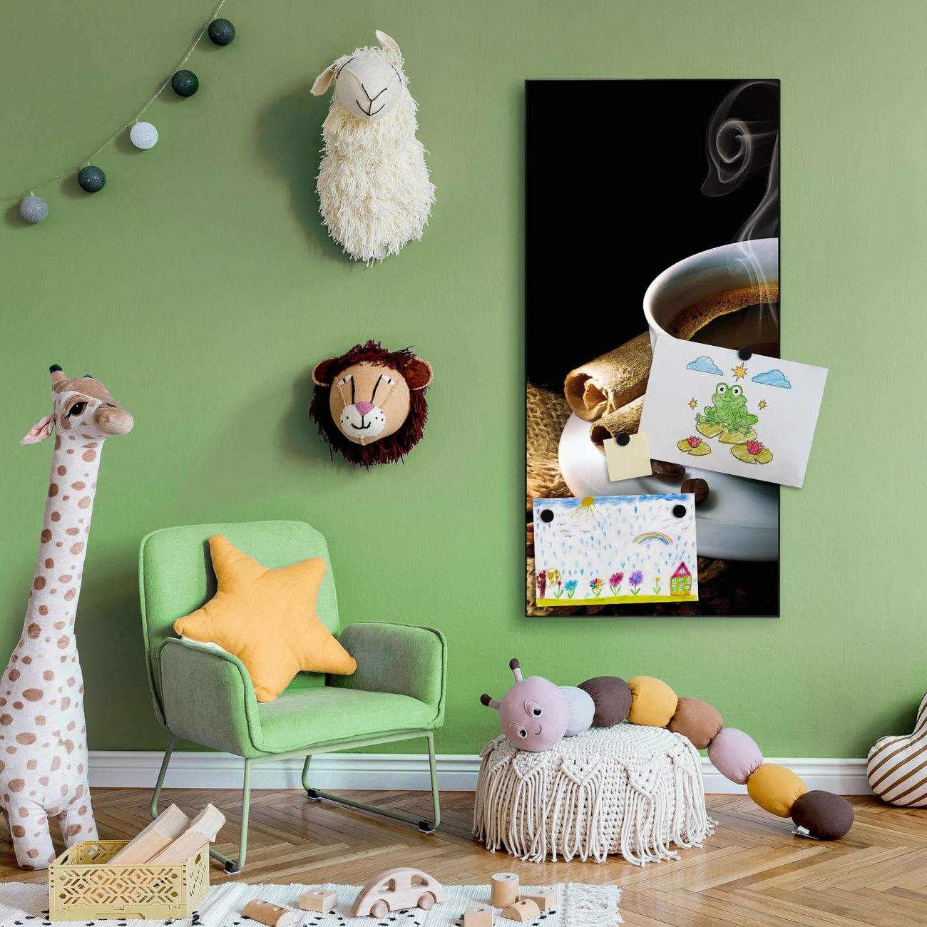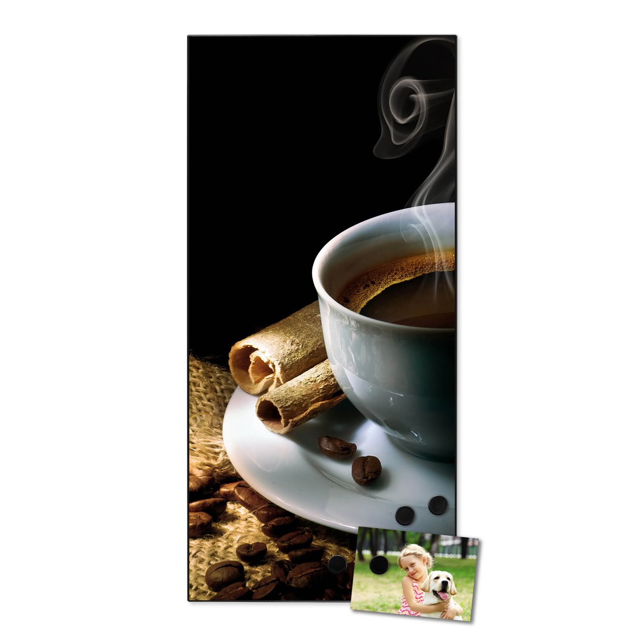 FUNKTION:  Die banjado Magnettafel mit Motiv Hot Coffee Motiv bringt Ordnung in Ihr Zettelchaos. Fotos, Termine, Notizen oder Rezepte lassen Sich hier stilvoll mit Magneten ordnen, Sie behalten alles im Blick. An der Design Magnettafel halten alle handesüblichen Magnete. DESIGN:  Die magnetische Pinnwand mit dem Motiv Motiv Hot Coffee ist ein eleganter Begleiter im Alltag. Mit dieser Memotafel aus Metall haben Sie auch ohne Notizen und Magnete ein schönes Dekoelement. Das Format bietet Ihnen ausreichend Platz um alle wichtigen Informationen im Blick zu behalten. DETAILS:  Die Magnettafel besteht aus silber-grau, weiß oder schwarzlackiertem Stahl. Sie hat eine Größe von 37 x 78 x 2cm. Es befinden sich auf der Rückseite vorgefertigte Aufhängungen die eine schnelle und unkomplizierte Anbringung ermöglichen. Das Motiv ist mit einem seidenmatten Laminat versehen und schützt so zusätzlich vor Kratzern. NUTZEN:  Sie können dieses Memoboard groß als Wandbild nutzen, es halten alle handelsüblichen Magneten daran. Die Pinnwand ist mit einem feuchten Lappen oder Schwamm abwischbar. Sie finden bei uns eine große Auswahl an passenden Magneten. BANJADO:  Wir sind ein kleines Team aus dem Herzen von Sachsen. Wir fertigen alle Artikel von Hand für Sie an, Sie erhalten keine preiswerte Importware. Auf Wunsch können Sie auch Ihr eigenes Foto auf die Magnettafel aufbringen, schreiben Sie uns an. Herzlichst, Ihr banjado-Team