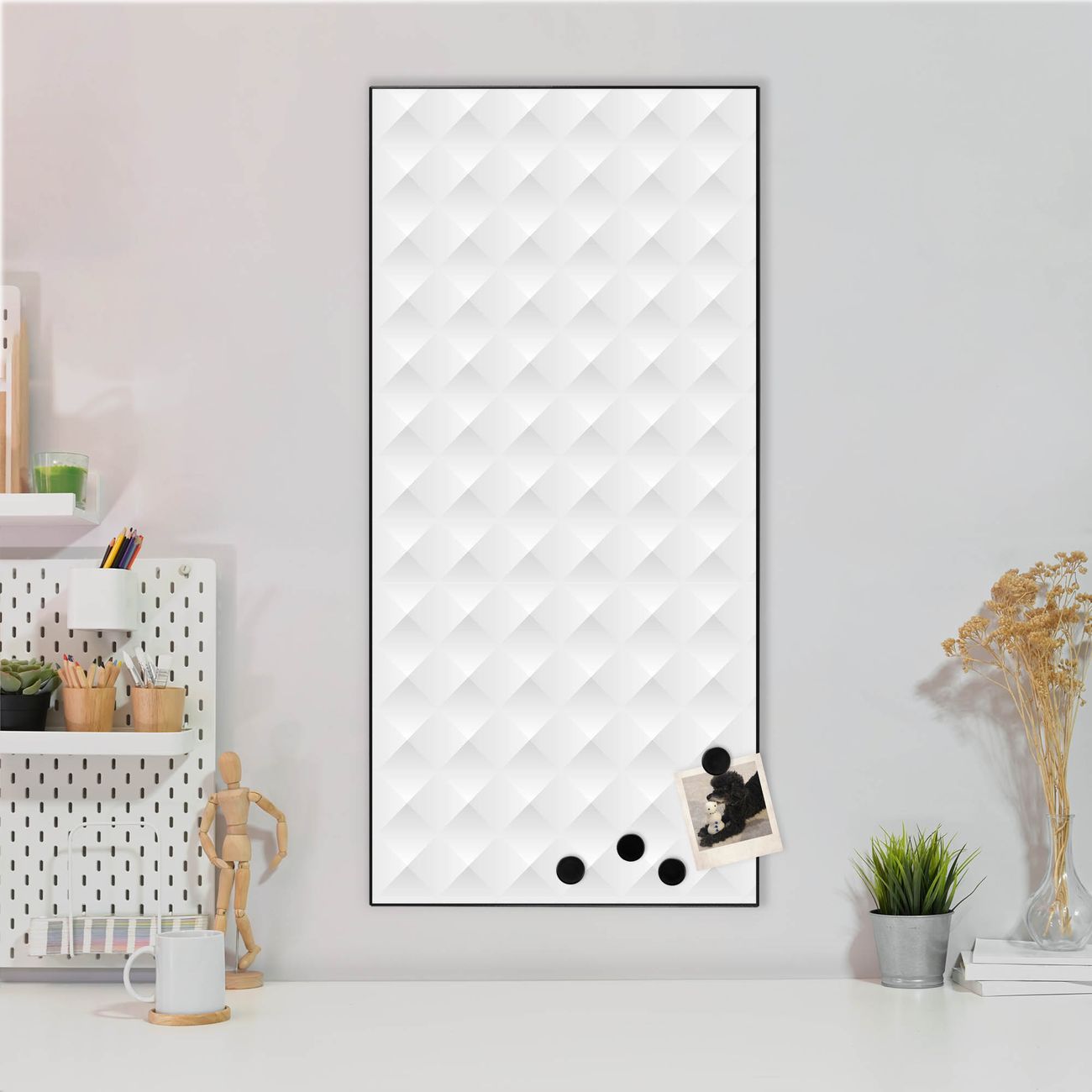 FUNKTION:  Die banjado Magnettafel mit Motiv In Out Motiv bringt Ordnung in Ihr Zettelchaos. Fotos, Termine, Notizen oder Rezepte lassen Sich hier stilvoll mit Magneten ordnen, Sie behalten alles im Blick. An der Design Magnettafel halten alle handesüblichen Magnete. DESIGN:  Die magnetische Pinnwand mit dem Motiv Motiv In Out ist ein eleganter Begleiter im Alltag. Mit dieser Memotafel aus Metall haben Sie auch ohne Notizen und Magnete ein schönes Dekoelement. Das Format bietet Ihnen ausreichend Platz um alle wichtigen Informationen im Blick zu behalten. DETAILS:  Die Magnettafel besteht aus silber-grau, weiß oder schwarzlackiertem Stahl. Sie hat eine Größe von 37 x 78 x 2cm. Es befinden sich auf der Rückseite vorgefertigte Aufhängungen die eine schnelle und unkomplizierte Anbringung ermöglichen. Das Motiv ist mit einem seidenmatten Laminat versehen und schützt so zusätzlich vor Kratzern. NUTZEN:  Sie können dieses Memoboard groß als Wandbild nutzen, es halten alle handelsüblichen Magneten daran. Die Pinnwand ist mit einem feuchten Lappen oder Schwamm abwischbar. Sie finden bei uns eine große Auswahl an passenden Magneten. BANJADO:  Wir sind ein kleines Team aus dem Herzen von Sachsen. Wir fertigen alle Artikel von Hand für Sie an, Sie erhalten keine preiswerte Importware. Auf Wunsch können Sie auch Ihr eigenes Foto auf die Magnettafel aufbringen, schreiben Sie uns an. Herzlichst, Ihr banjado-Team