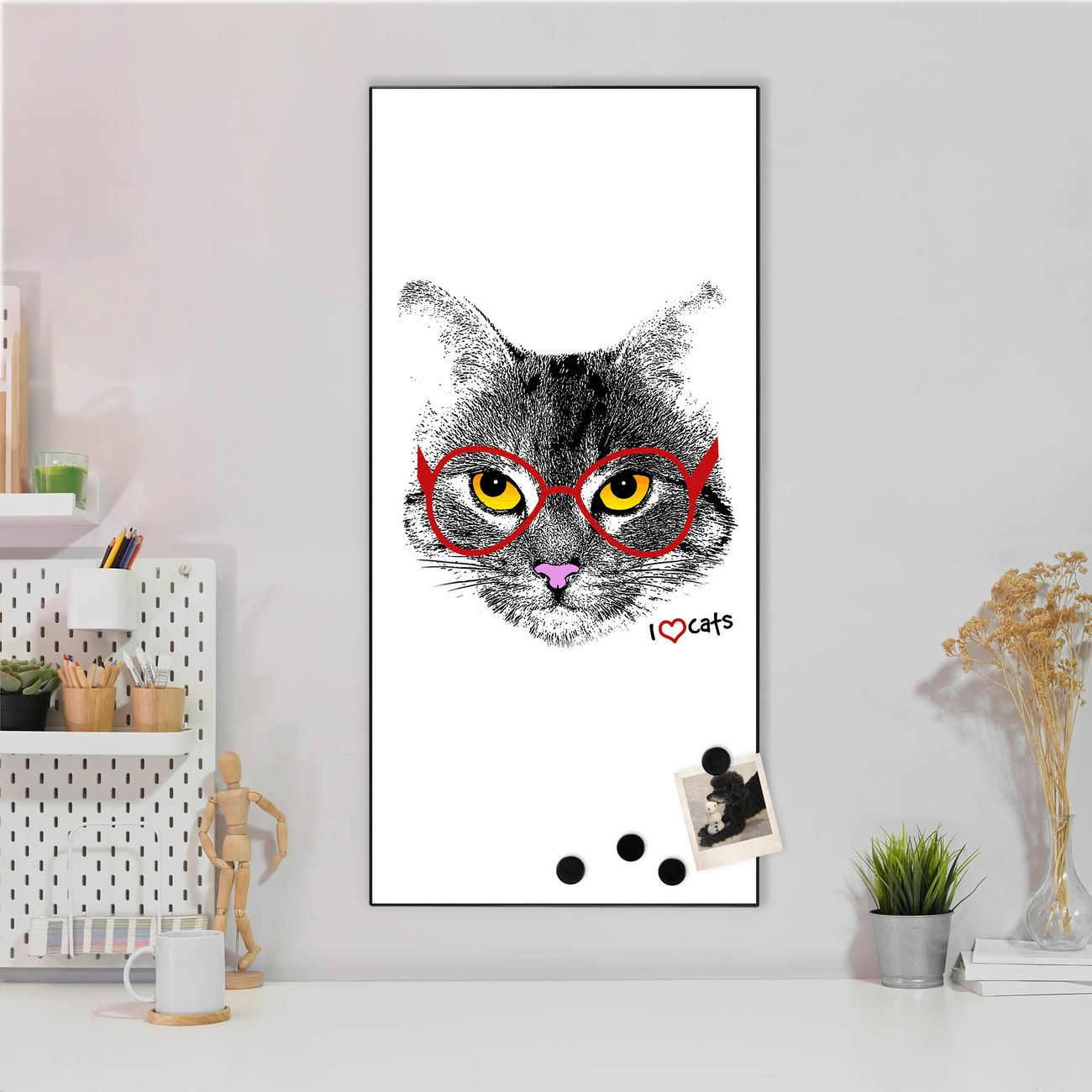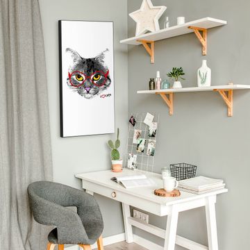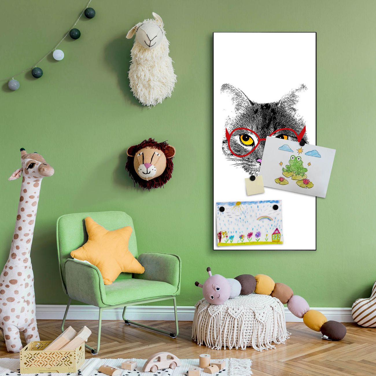 FUNKTION:  Die banjado Magnettafel mit Motiv Intellicat Motiv bringt Ordnung in Ihr Zettelchaos. Fotos, Termine, Notizen oder Rezepte lassen Sich hier stilvoll mit Magneten ordnen, Sie behalten alles im Blick. An der Design Magnettafel halten alle handesüblichen Magnete. DESIGN:  Die magnetische Pinnwand mit dem Motiv Motiv Intellicat ist ein eleganter Begleiter im Alltag. Mit dieser Memotafel aus Metall haben Sie auch ohne Notizen und Magnete ein schönes Dekoelement. Das Format bietet Ihnen ausreichend Platz um alle wichtigen Informationen im Blick zu behalten. DETAILS:  Die Magnettafel besteht aus silber-grau, weiß oder schwarzlackiertem Stahl. Sie hat eine Größe von 37 x 78 x 2cm. Es befinden sich auf der Rückseite vorgefertigte Aufhängungen die eine schnelle und unkomplizierte Anbringung ermöglichen. Das Motiv ist mit einem seidenmatten Laminat versehen und schützt so zusätzlich vor Kratzern. NUTZEN:  Sie können dieses Memoboard groß als Wandbild nutzen, es halten alle handelsüblichen Magneten daran. Die Pinnwand ist mit einem feuchten Lappen oder Schwamm abwischbar. Sie finden bei uns eine große Auswahl an passenden Magneten. BANJADO:  Wir sind ein kleines Team aus dem Herzen von Sachsen. Wir fertigen alle Artikel von Hand für Sie an, Sie erhalten keine preiswerte Importware. Auf Wunsch können Sie auch Ihr eigenes Foto auf die Magnettafel aufbringen, schreiben Sie uns an. Herzlichst, Ihr banjado-Team