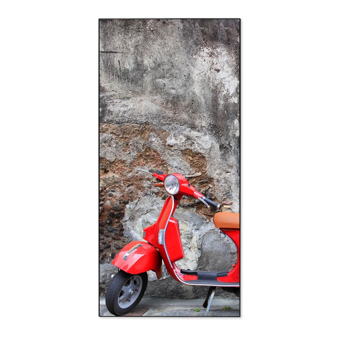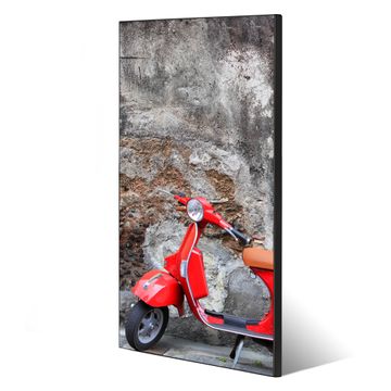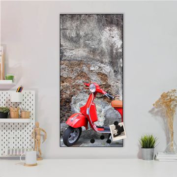 FUNKTION:  Die banjado Magnettafel mit Motiv Italienischer Roller Motiv bringt Ordnung in Ihr Zettelchaos. Fotos, Termine, Notizen oder Rezepte lassen Sich hier stilvoll mit Magneten ordnen, Sie behalten alles im Blick. An der Design Magnettafel halten alle handesüblichen Magnete. DESIGN:  Die magnetische Pinnwand mit dem Motiv Motiv Italienischer Roller ist ein eleganter Begleiter im Alltag. Mit dieser Memotafel aus Metall haben Sie auch ohne Notizen und Magnete ein schönes Dekoelement. Das Format bietet Ihnen ausreichend Platz um alle wichtigen Informationen im Blick zu behalten. DETAILS:  Die Magnettafel besteht aus silber-grau, weiß oder schwarzlackiertem Stahl. Sie hat eine Größe von 37 x 78 x 2cm. Es befinden sich auf der Rückseite vorgefertigte Aufhängungen die eine schnelle und unkomplizierte Anbringung ermöglichen. Das Motiv ist mit einem seidenmatten Laminat versehen und schützt so zusätzlich vor Kratzern. NUTZEN:  Sie können dieses Memoboard groß als Wandbild nutzen, es halten alle handelsüblichen Magneten daran. Die Pinnwand ist mit einem feuchten Lappen oder Schwamm abwischbar. Sie finden bei uns eine große Auswahl an passenden Magneten. BANJADO:  Wir sind ein kleines Team aus dem Herzen von Sachsen. Wir fertigen alle Artikel von Hand für Sie an, Sie erhalten keine preiswerte Importware. Auf Wunsch können Sie auch Ihr eigenes Foto auf die Magnettafel aufbringen, schreiben Sie uns an. Herzlichst, Ihr banjado-Team