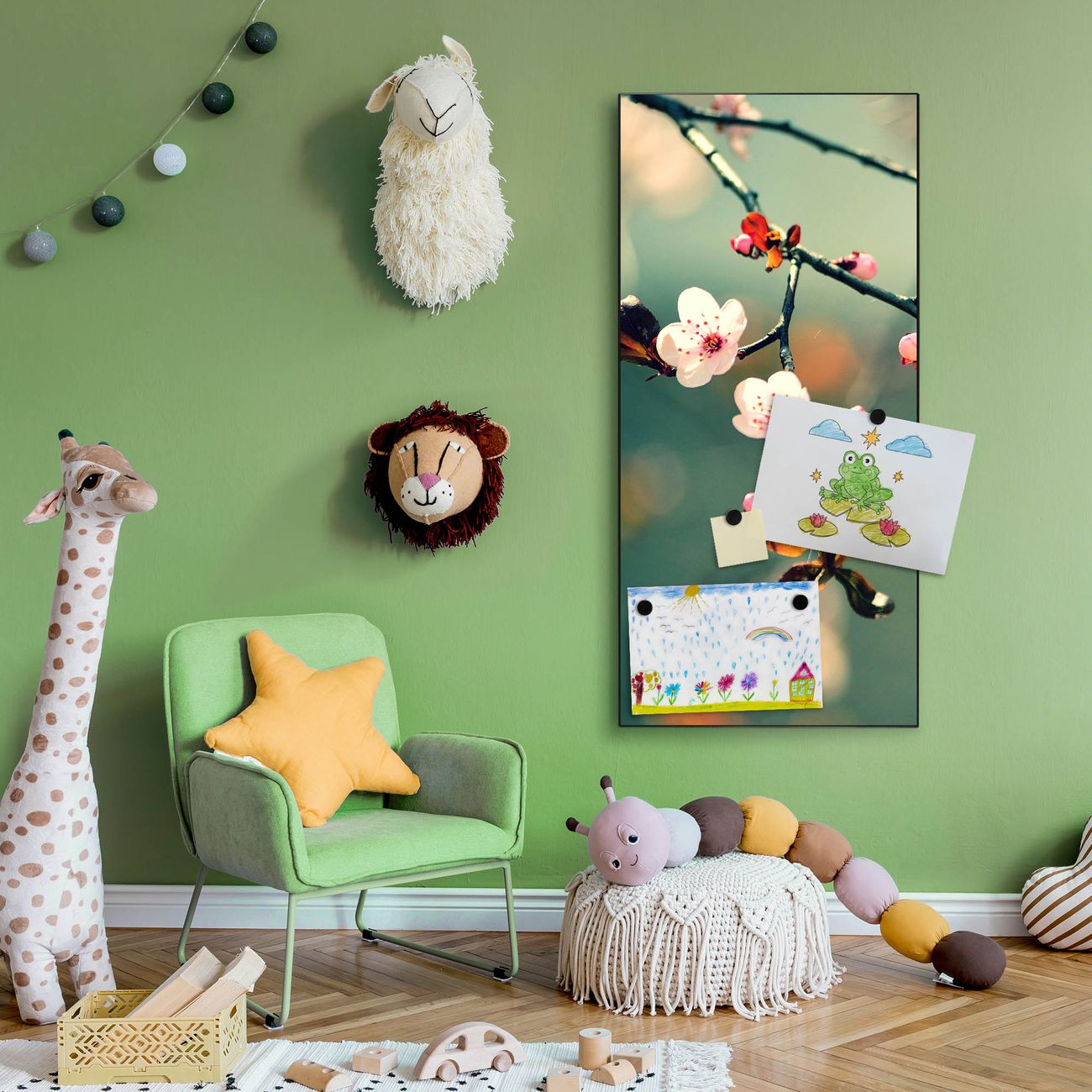 FUNKTION:  Die banjado Magnettafel mit Motiv Japankirsche Motiv bringt Ordnung in Ihr Zettelchaos. Fotos, Termine, Notizen oder Rezepte lassen Sich hier stilvoll mit Magneten ordnen, Sie behalten alles im Blick. An der Design Magnettafel halten alle handesüblichen Magnete. DESIGN:  Die magnetische Pinnwand mit dem Motiv Motiv Japankirsche ist ein eleganter Begleiter im Alltag. Mit dieser Memotafel aus Metall haben Sie auch ohne Notizen und Magnete ein schönes Dekoelement. Das Format bietet Ihnen ausreichend Platz um alle wichtigen Informationen im Blick zu behalten. DETAILS:  Die Magnettafel besteht aus silber-grau, weiß oder schwarzlackiertem Stahl. Sie hat eine Größe von 37 x 78 x 2cm. Es befinden sich auf der Rückseite vorgefertigte Aufhängungen die eine schnelle und unkomplizierte Anbringung ermöglichen. Das Motiv ist mit einem seidenmatten Laminat versehen und schützt so zusätzlich vor Kratzern. NUTZEN:  Sie können dieses Memoboard groß als Wandbild nutzen, es halten alle handelsüblichen Magneten daran. Die Pinnwand ist mit einem feuchten Lappen oder Schwamm abwischbar. Sie finden bei uns eine große Auswahl an passenden Magneten. BANJADO:  Wir sind ein kleines Team aus dem Herzen von Sachsen. Wir fertigen alle Artikel von Hand für Sie an, Sie erhalten keine preiswerte Importware. Auf Wunsch können Sie auch Ihr eigenes Foto auf die Magnettafel aufbringen, schreiben Sie uns an. Herzlichst, Ihr banjado-Team