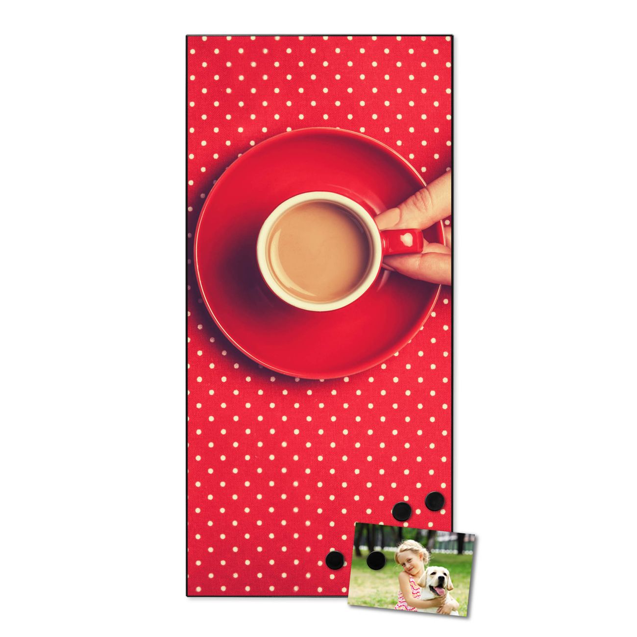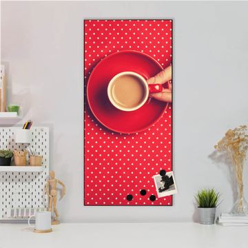 FUNKTION:  Die banjado Magnettafel mit Motiv Kaffee Rot Weiss Motiv bringt Ordnung in Ihr Zettelchaos. Fotos, Termine, Notizen oder Rezepte lassen Sich hier stilvoll mit Magneten ordnen, Sie behalten alles im Blick. An der Design Magnettafel halten alle handesüblichen Magnete. DESIGN:  Die magnetische Pinnwand mit dem Motiv Motiv Kaffee Rot Weiss ist ein eleganter Begleiter im Alltag. Mit dieser Memotafel aus Metall haben Sie auch ohne Notizen und Magnete ein schönes Dekoelement. Das Format bietet Ihnen ausreichend Platz um alle wichtigen Informationen im Blick zu behalten. DETAILS:  Die Magnettafel besteht aus silber-grau, weiß oder schwarzlackiertem Stahl. Sie hat eine Größe von 37 x 78 x 2cm. Es befinden sich auf der Rückseite vorgefertigte Aufhängungen die eine schnelle und unkomplizierte Anbringung ermöglichen. Das Motiv ist mit einem seidenmatten Laminat versehen und schützt so zusätzlich vor Kratzern. NUTZEN:  Sie können dieses Memoboard groß als Wandbild nutzen, es halten alle handelsüblichen Magneten daran. Die Pinnwand ist mit einem feuchten Lappen oder Schwamm abwischbar. Sie finden bei uns eine große Auswahl an passenden Magneten. BANJADO:  Wir sind ein kleines Team aus dem Herzen von Sachsen. Wir fertigen alle Artikel von Hand für Sie an, Sie erhalten keine preiswerte Importware. Auf Wunsch können Sie auch Ihr eigenes Foto auf die Magnettafel aufbringen, schreiben Sie uns an. Herzlichst, Ihr banjado-Team