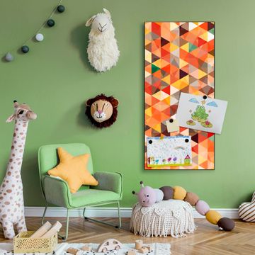 FUNKTION:  Die banjado Magnettafel mit Motiv Kaleidoskop Motiv bringt Ordnung in Ihr Zettelchaos. Fotos, Termine, Notizen oder Rezepte lassen Sich hier stilvoll mit Magneten ordnen, Sie behalten alles im Blick. An der Design Magnettafel halten alle handesüblichen Magnete. DESIGN:  Die magnetische Pinnwand mit dem Motiv Motiv Kaleidoskop ist ein eleganter Begleiter im Alltag. Mit dieser Memotafel aus Metall haben Sie auch ohne Notizen und Magnete ein schönes Dekoelement. Das Format bietet Ihnen ausreichend Platz um alle wichtigen Informationen im Blick zu behalten. DETAILS:  Die Magnettafel besteht aus silber-grau, weiß oder schwarzlackiertem Stahl. Sie hat eine Größe von 37 x 78 x 2cm. Es befinden sich auf der Rückseite vorgefertigte Aufhängungen die eine schnelle und unkomplizierte Anbringung ermöglichen. Das Motiv ist mit einem seidenmatten Laminat versehen und schützt so zusätzlich vor Kratzern. NUTZEN:  Sie können dieses Memoboard groß als Wandbild nutzen, es halten alle handelsüblichen Magneten daran. Die Pinnwand ist mit einem feuchten Lappen oder Schwamm abwischbar. Sie finden bei uns eine große Auswahl an passenden Magneten. BANJADO:  Wir sind ein kleines Team aus dem Herzen von Sachsen. Wir fertigen alle Artikel von Hand für Sie an, Sie erhalten keine preiswerte Importware. Auf Wunsch können Sie auch Ihr eigenes Foto auf die Magnettafel aufbringen, schreiben Sie uns an. Herzlichst, Ihr banjado-Team
