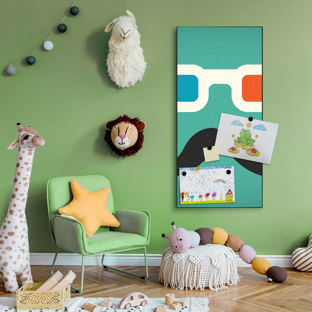 FUNKTION:  Die banjado Magnettafel mit Motiv Kinobrille Motiv bringt Ordnung in Ihr Zettelchaos. Fotos, Termine, Notizen oder Rezepte lassen Sich hier stilvoll mit Magneten ordnen, Sie behalten alles im Blick. An der Design Magnettafel halten alle handesüblichen Magnete. DESIGN:  Die magnetische Pinnwand mit dem Motiv Motiv Kinobrille ist ein eleganter Begleiter im Alltag. Mit dieser Memotafel aus Metall haben Sie auch ohne Notizen und Magnete ein schönes Dekoelement. Das Format bietet Ihnen ausreichend Platz um alle wichtigen Informationen im Blick zu behalten. DETAILS:  Die Magnettafel besteht aus silber-grau, weiß oder schwarzlackiertem Stahl. Sie hat eine Größe von 37 x 78 x 2cm. Es befinden sich auf der Rückseite vorgefertigte Aufhängungen die eine schnelle und unkomplizierte Anbringung ermöglichen. Das Motiv ist mit einem seidenmatten Laminat versehen und schützt so zusätzlich vor Kratzern. NUTZEN:  Sie können dieses Memoboard groß als Wandbild nutzen, es halten alle handelsüblichen Magneten daran. Die Pinnwand ist mit einem feuchten Lappen oder Schwamm abwischbar. Sie finden bei uns eine große Auswahl an passenden Magneten. BANJADO:  Wir sind ein kleines Team aus dem Herzen von Sachsen. Wir fertigen alle Artikel von Hand für Sie an, Sie erhalten keine preiswerte Importware. Auf Wunsch können Sie auch Ihr eigenes Foto auf die Magnettafel aufbringen, schreiben Sie uns an. Herzlichst, Ihr banjado-Team