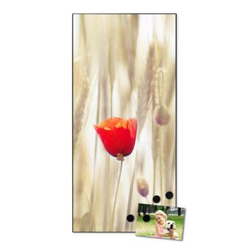 FUNKTION:  Die banjado Magnettafel mit Motiv Klatschmohn Motiv bringt Ordnung in Ihr Zettelchaos. Fotos, Termine, Notizen oder Rezepte lassen Sich hier stilvoll mit Magneten ordnen, Sie behalten alles im Blick. An der Design Magnettafel halten alle handesüblichen Magnete. DESIGN:  Die magnetische Pinnwand mit dem Motiv Motiv Klatschmohn ist ein eleganter Begleiter im Alltag. Mit dieser Memotafel aus Metall haben Sie auch ohne Notizen und Magnete ein schönes Dekoelement. Das Format bietet Ihnen ausreichend Platz um alle wichtigen Informationen im Blick zu behalten. DETAILS:  Die Magnettafel besteht aus silber-grau, weiß oder schwarzlackiertem Stahl. Sie hat eine Größe von 37 x 78 x 2cm. Es befinden sich auf der Rückseite vorgefertigte Aufhängungen die eine schnelle und unkomplizierte Anbringung ermöglichen. Das Motiv ist mit einem seidenmatten Laminat versehen und schützt so zusätzlich vor Kratzern. NUTZEN:  Sie können dieses Memoboard groß als Wandbild nutzen, es halten alle handelsüblichen Magneten daran. Die Pinnwand ist mit einem feuchten Lappen oder Schwamm abwischbar. Sie finden bei uns eine große Auswahl an passenden Magneten. BANJADO:  Wir sind ein kleines Team aus dem Herzen von Sachsen. Wir fertigen alle Artikel von Hand für Sie an, Sie erhalten keine preiswerte Importware. Auf Wunsch können Sie auch Ihr eigenes Foto auf die Magnettafel aufbringen, schreiben Sie uns an. Herzlichst, Ihr banjado-Team