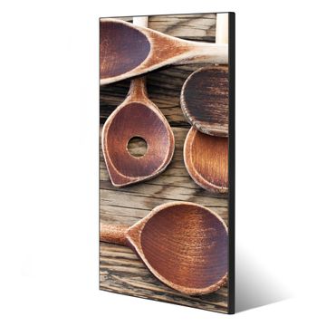 FUNKTION:  Die banjado Magnettafel mit Motiv Kochlöffel Motiv bringt Ordnung in Ihr Zettelchaos. Fotos, Termine, Notizen oder Rezepte lassen Sich hier stilvoll mit Magneten ordnen, Sie behalten alles im Blick. An der Design Magnettafel halten alle handesüblichen Magnete. DESIGN:  Die magnetische Pinnwand mit dem Motiv Motiv Kochlöffel ist ein eleganter Begleiter im Alltag. Mit dieser Memotafel aus Metall haben Sie auch ohne Notizen und Magnete ein schönes Dekoelement. Das Format bietet Ihnen ausreichend Platz um alle wichtigen Informationen im Blick zu behalten. DETAILS:  Die Magnettafel besteht aus silber-grau, weiß oder schwarzlackiertem Stahl. Sie hat eine Größe von 37 x 78 x 2cm. Es befinden sich auf der Rückseite vorgefertigte Aufhängungen die eine schnelle und unkomplizierte Anbringung ermöglichen. Das Motiv ist mit einem seidenmatten Laminat versehen und schützt so zusätzlich vor Kratzern. NUTZEN:  Sie können dieses Memoboard groß als Wandbild nutzen, es halten alle handelsüblichen Magneten daran. Die Pinnwand ist mit einem feuchten Lappen oder Schwamm abwischbar. Sie finden bei uns eine große Auswahl an passenden Magneten. BANJADO:  Wir sind ein kleines Team aus dem Herzen von Sachsen. Wir fertigen alle Artikel von Hand für Sie an, Sie erhalten keine preiswerte Importware. Auf Wunsch können Sie auch Ihr eigenes Foto auf die Magnettafel aufbringen, schreiben Sie uns an. Herzlichst, Ihr banjado-Team