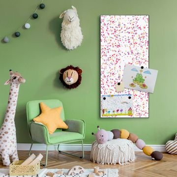 FUNKTION:  Die banjado Magnettafel mit Motiv Konfettiregen Motiv bringt Ordnung in Ihr Zettelchaos. Fotos, Termine, Notizen oder Rezepte lassen Sich hier stilvoll mit Magneten ordnen, Sie behalten alles im Blick. An der Design Magnettafel halten alle handesüblichen Magnete. DESIGN:  Die magnetische Pinnwand mit dem Motiv Motiv Konfettiregen ist ein eleganter Begleiter im Alltag. Mit dieser Memotafel aus Metall haben Sie auch ohne Notizen und Magnete ein schönes Dekoelement. Das Format bietet Ihnen ausreichend Platz um alle wichtigen Informationen im Blick zu behalten. DETAILS:  Die Magnettafel besteht aus silber-grau, weiß oder schwarzlackiertem Stahl. Sie hat eine Größe von 37 x 78 x 2cm. Es befinden sich auf der Rückseite vorgefertigte Aufhängungen die eine schnelle und unkomplizierte Anbringung ermöglichen. Das Motiv ist mit einem seidenmatten Laminat versehen und schützt so zusätzlich vor Kratzern. NUTZEN:  Sie können dieses Memoboard groß als Wandbild nutzen, es halten alle handelsüblichen Magneten daran. Die Pinnwand ist mit einem feuchten Lappen oder Schwamm abwischbar. Sie finden bei uns eine große Auswahl an passenden Magneten. BANJADO:  Wir sind ein kleines Team aus dem Herzen von Sachsen. Wir fertigen alle Artikel von Hand für Sie an, Sie erhalten keine preiswerte Importware. Auf Wunsch können Sie auch Ihr eigenes Foto auf die Magnettafel aufbringen, schreiben Sie uns an. Herzlichst, Ihr banjado-Team