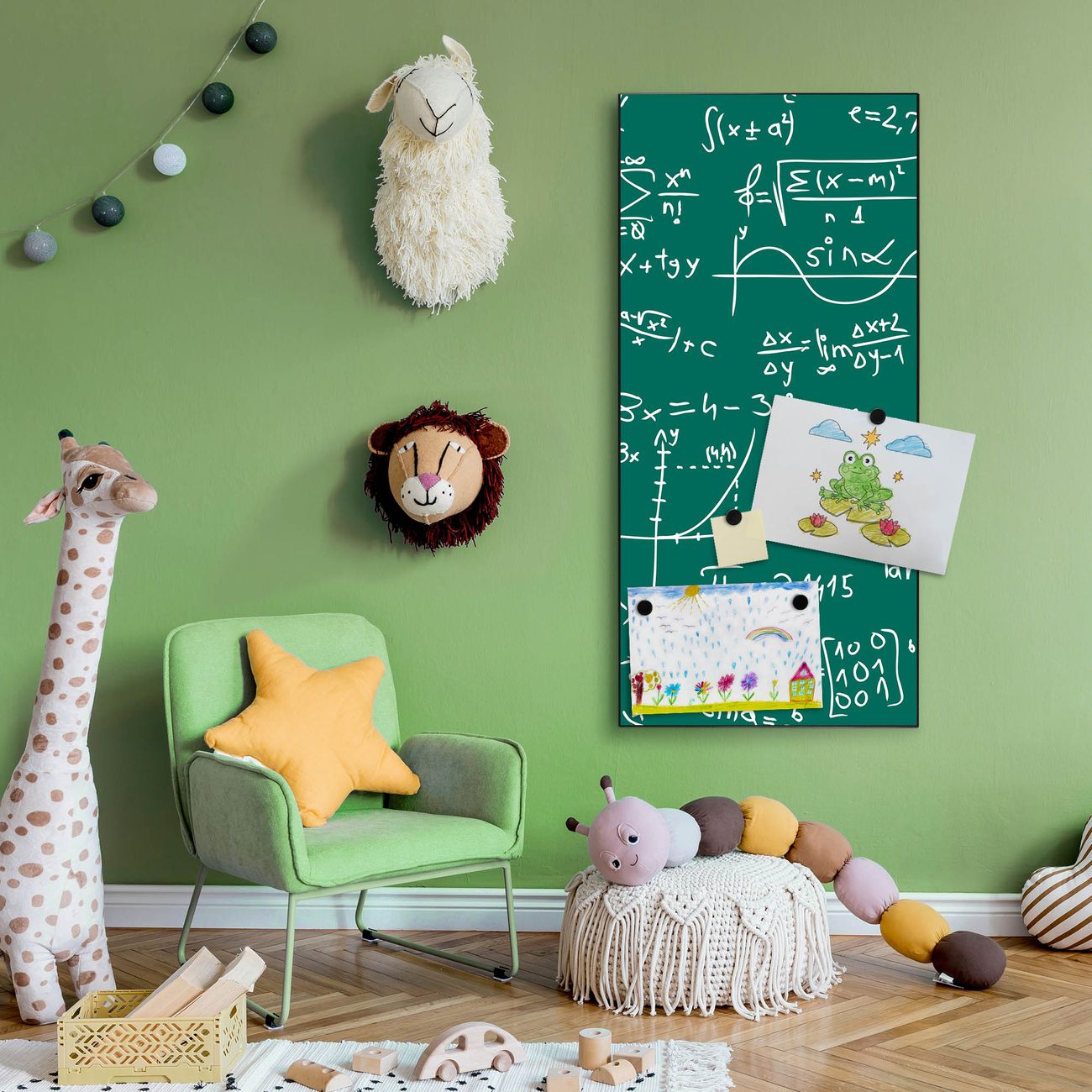 FUNKTION:  Die banjado Magnettafel mit Motiv Kreidetafel Motiv bringt Ordnung in Ihr Zettelchaos. Fotos, Termine, Notizen oder Rezepte lassen Sich hier stilvoll mit Magneten ordnen, Sie behalten alles im Blick. An der Design Magnettafel halten alle handesüblichen Magnete. DESIGN:  Die magnetische Pinnwand mit dem Motiv Motiv Kreidetafel ist ein eleganter Begleiter im Alltag. Mit dieser Memotafel aus Metall haben Sie auch ohne Notizen und Magnete ein schönes Dekoelement. Das Format bietet Ihnen ausreichend Platz um alle wichtigen Informationen im Blick zu behalten. DETAILS:  Die Magnettafel besteht aus silber-grau, weiß oder schwarzlackiertem Stahl. Sie hat eine Größe von 37 x 78 x 2cm. Es befinden sich auf der Rückseite vorgefertigte Aufhängungen die eine schnelle und unkomplizierte Anbringung ermöglichen. Das Motiv ist mit einem seidenmatten Laminat versehen und schützt so zusätzlich vor Kratzern. NUTZEN:  Sie können dieses Memoboard groß als Wandbild nutzen, es halten alle handelsüblichen Magneten daran. Die Pinnwand ist mit einem feuchten Lappen oder Schwamm abwischbar. Sie finden bei uns eine große Auswahl an passenden Magneten. BANJADO:  Wir sind ein kleines Team aus dem Herzen von Sachsen. Wir fertigen alle Artikel von Hand für Sie an, Sie erhalten keine preiswerte Importware. Auf Wunsch können Sie auch Ihr eigenes Foto auf die Magnettafel aufbringen, schreiben Sie uns an. Herzlichst, Ihr banjado-Team