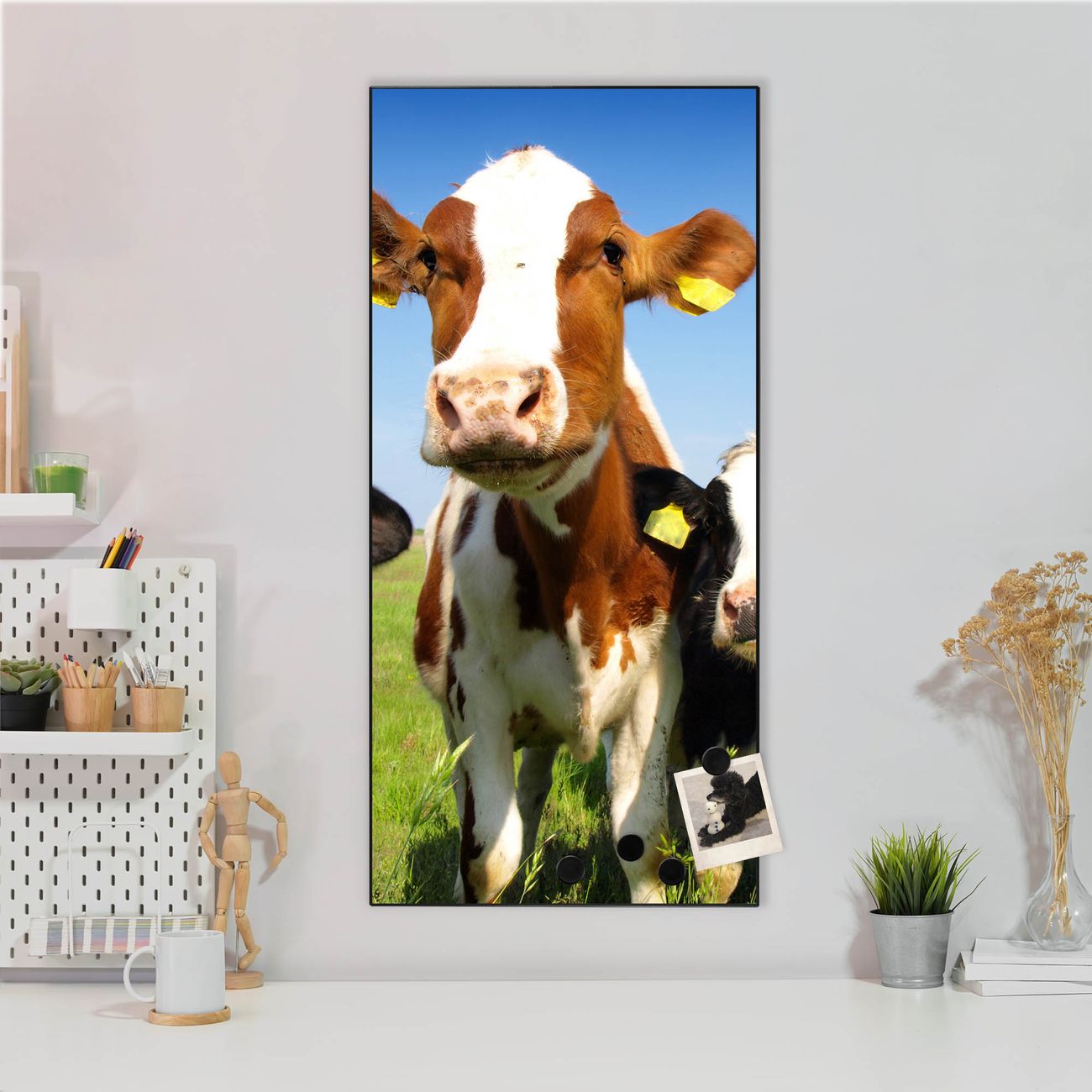 Stahl Magnettafel Hochformat 78x37cm Kühe