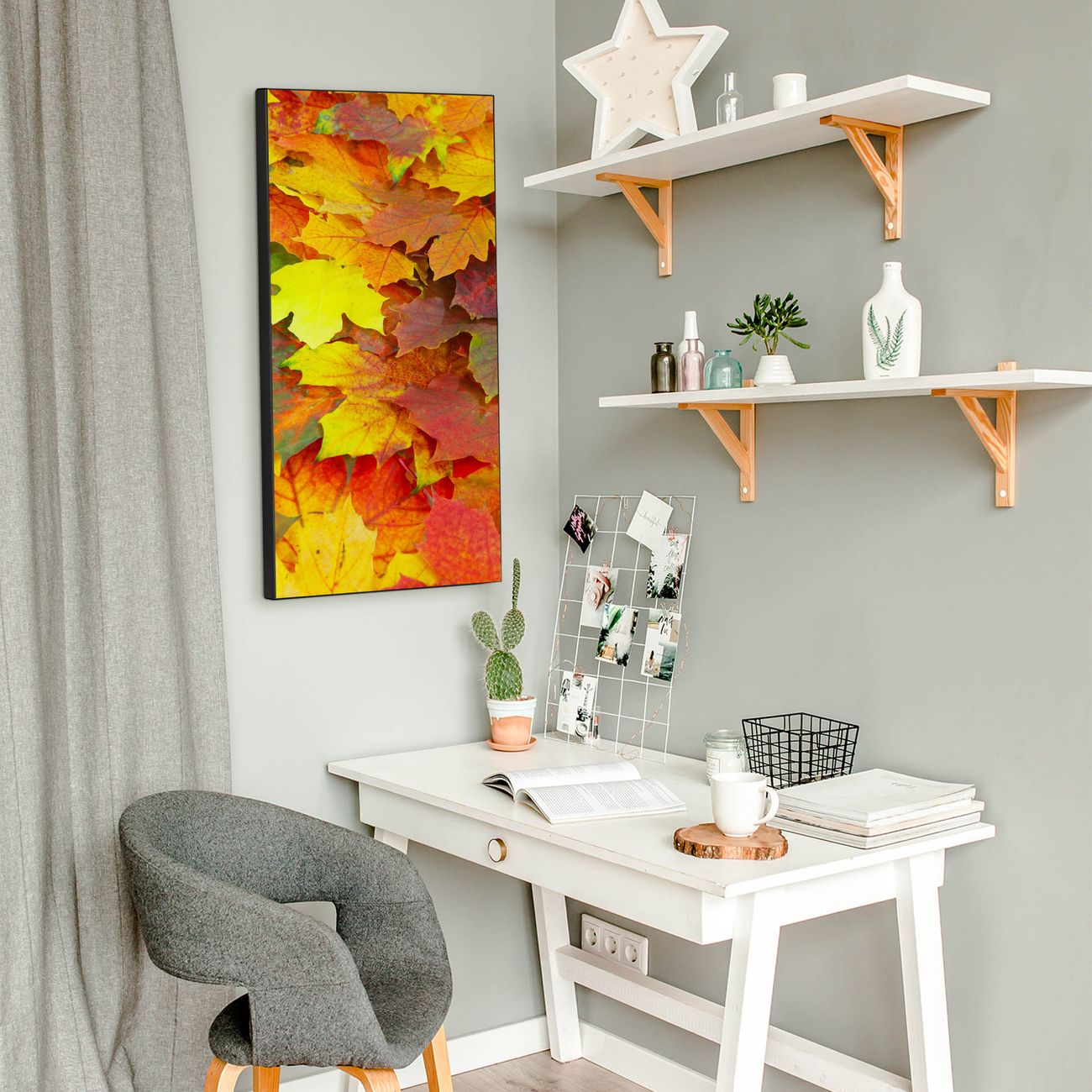 FUNKTION:  Die banjado Magnettafel mit Laub Motiv bringt Ordnung in Ihr Zettelchaos. Fotos, Termine, Notizen oder Rezepte lassen Sich hier stilvoll mit Magneten ordnen, Sie behalten alles im Blick. An der Design Magnettafel halten alle handesüblichen Magnete. DESIGN:  Die magnetische Pinnwand mit dem Motiv Laub ist ein eleganter Begleiter im Alltag. Mit dieser Memotafel aus Metall haben Sie auch ohne Notizen und Magnete ein schönes Dekoelement. Das Format bietet Ihnen ausreichend Platz um alle wichtigen Informationen im Blick zu behalten. DETAILS:  Die Magnettafel besteht aus silber-grau, weiß oder schwarzlackiertem Stahl. Sie hat eine Größe von 37 x 78 x 2cm. Es befinden sich auf der Rückseite vorgefertigte Aufhängungen die eine schnelle und unkomplizierte Anbringung ermöglichen. Das Motiv ist mit einem seidenmatten Laminat versehen und schützt so zusätzlich vor Kratzern. NUTZEN:  Sie können dieses Memoboard groß als Wandbild nutzen, es halten alle handelsüblichen Magneten daran. Die Pinnwand ist mit einem feuchten Lappen oder Schwamm abwischbar. Sie finden bei uns eine große Auswahl an passenden Magneten. BANJADO:  Wir sind ein kleines Team aus dem Herzen von Sachsen. Wir fertigen alle Artikel von Hand für Sie an, Sie erhalten keine preiswerte Importware. Auf Wunsch können Sie auch Ihr eigenes Foto auf die Magnettafel aufbringen, schreiben Sie uns an. Herzlichst, Ihr banjado-Team